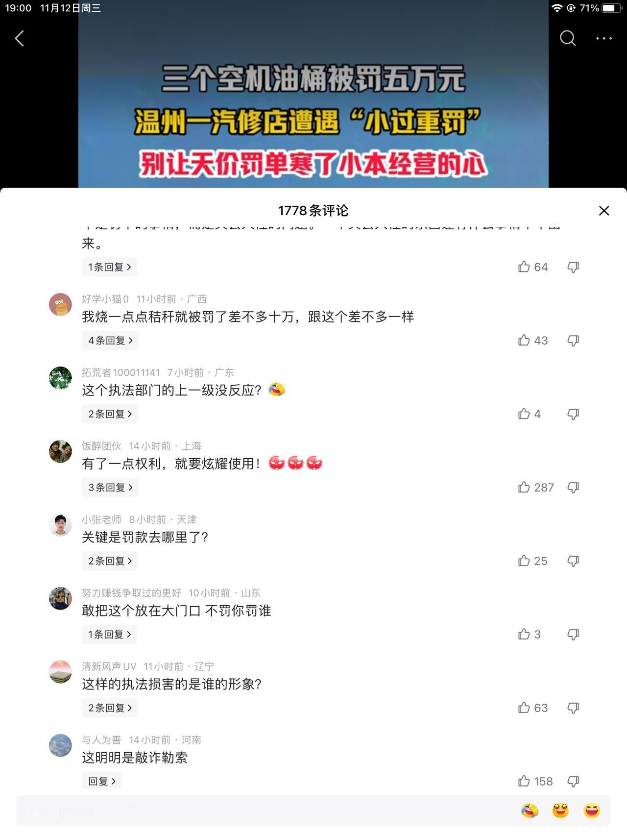 三个空桶罚款5万,不能讲价儿!不错不错。谁让你开修理厂了,你要是去要饭,拿什么理由罚你款? 你说一个月的利润才几千块,相当于大半年白干。知足吧!蓝领挣钱这么难吗?是不是不够努力?有没有反思一下? 烧个秸秆罚款十万。卖个猪肉罚款八万。不是给你开收据了吗?没什么大不了。门面还在,给你机会,你可要把握住。 栽树,还没卖就被征用了,你看到了吗?你这就是洒洒水啦!撅腚使劲干吧!