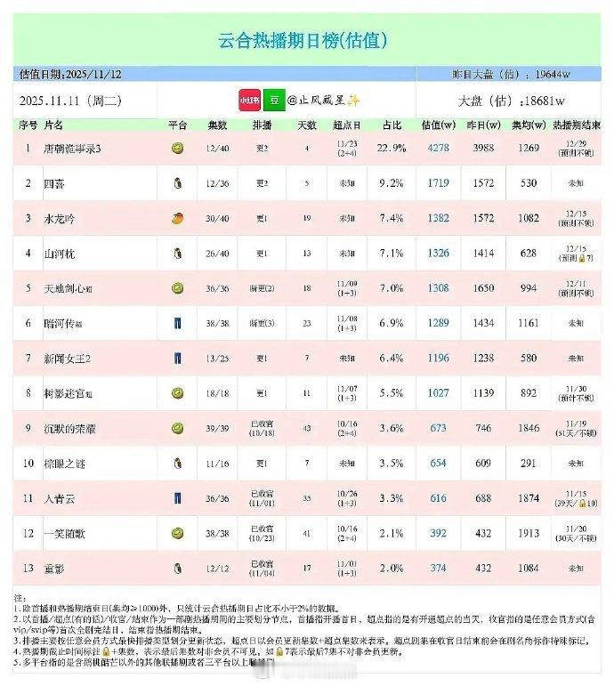 唐诡3破万,云合只有4300,网友辣评爱奇艺史上最水破万剧出现了…临江仙首次破万云合5289,朝雪录5833, 此身分明了。。。