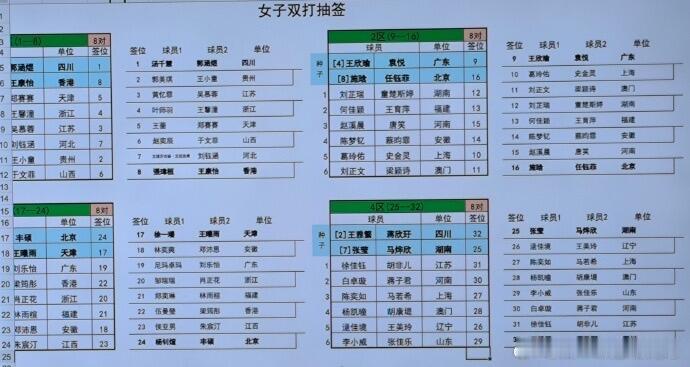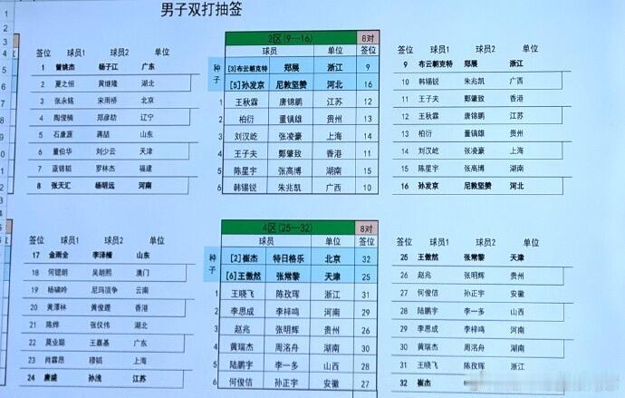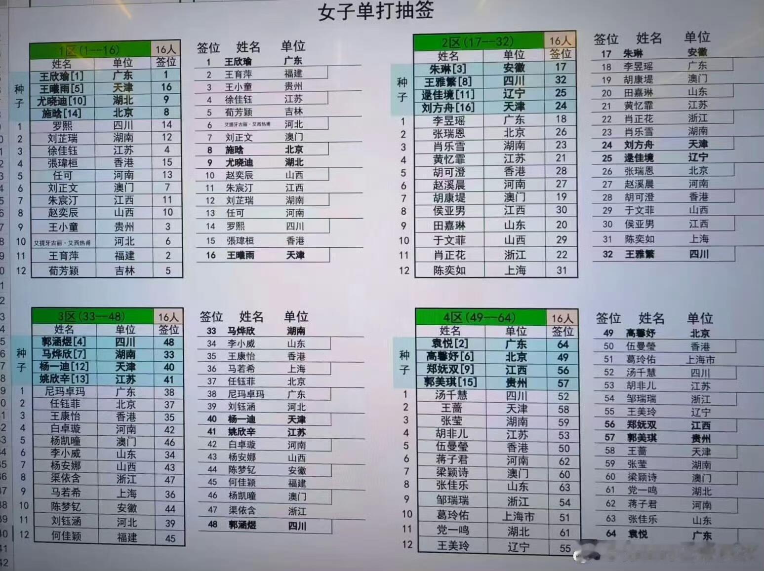 全运会网球签表男单种子分区布云朝克特【1】 vs 商竣程【5】周意【4】 vs 张之臻【8】孙发京【6】 vs 吴易昺【3】崔杰【7】 vs 黄泽林【2】女单种子分区王欣瑜【1】 vs 王曦雨【5】朱琳【3】 vs 王雅繁【8】马烨欣【7】 vs 郭涵煜【4】高馨妤【6】 vs 袁悦【2】盲猜一个男女单金牌🎖️?