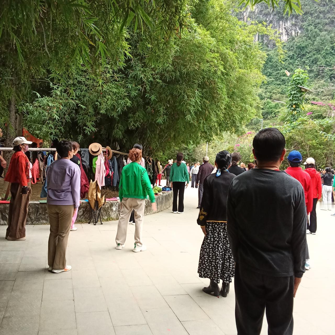 连阴雨了七八天。今天的巴马终于真正放晴了。康养的人们走出酒店公寓,来到大榕树广场盘阳河边。 有专门晒太阳的有做操的跳舞的练功的各种各样的锻炼方式让我这个初来乍到的老人忙得不亦乐乎。 这一天里我去了百魔洞口增加负氧离子,做了大黑管儿磁疗,到大榕树广场练习了拍打操,还在对你说啊大榕树广场草坪晒了太阳。 哈哈,这生活真丰富,如果以后自己租房做饭,恐怕还真没有这么多时间呢。