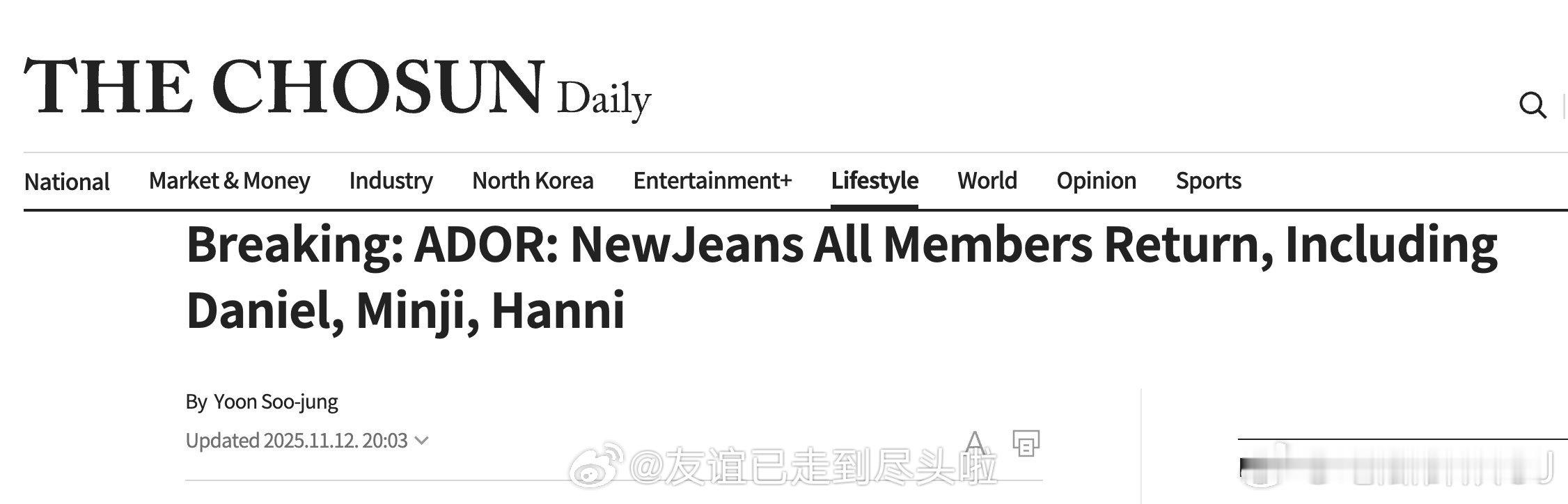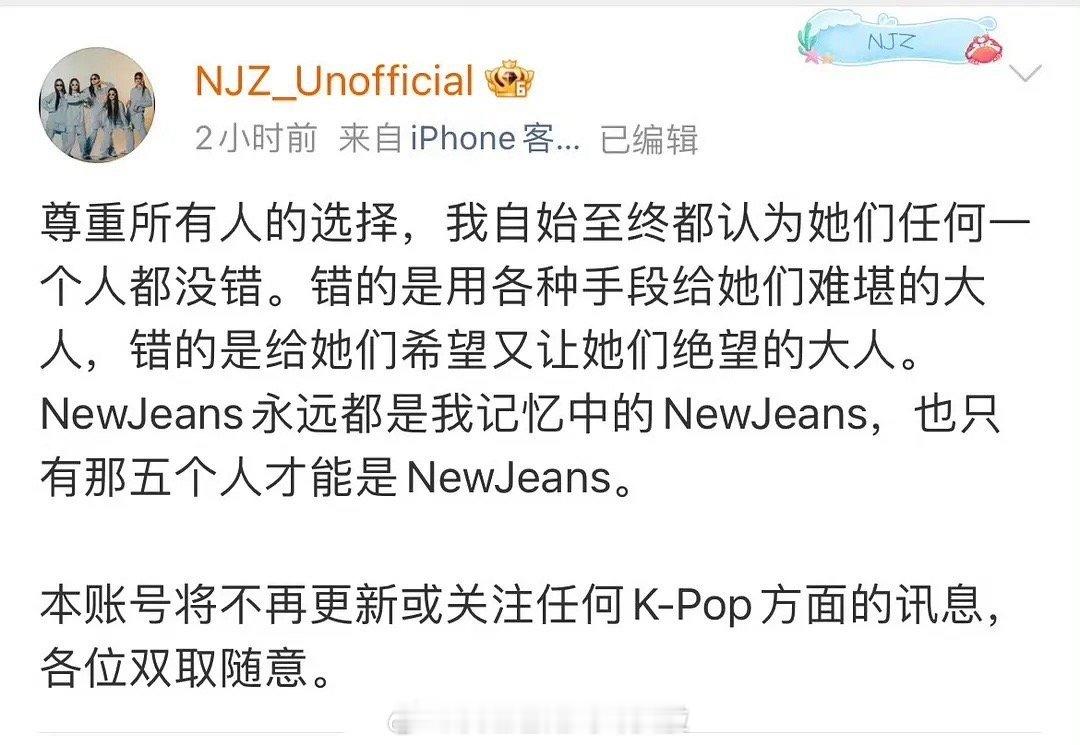 NewJeans全员宣布回归旧公司,但是是单宣,公司还没答应只是说在确认,还有个成员在南极🐧沟通不顺畅。然后NJZ的粉丝站子宣布退网两小时后也回归。说实话这团很火,但是成员除了那个混血的其他长得好像,里面的神颜也没记住,当初说被霸凌欺负控诉公司闹的轰轰烈烈还上了国会诉苦,最终还是对违约金低头