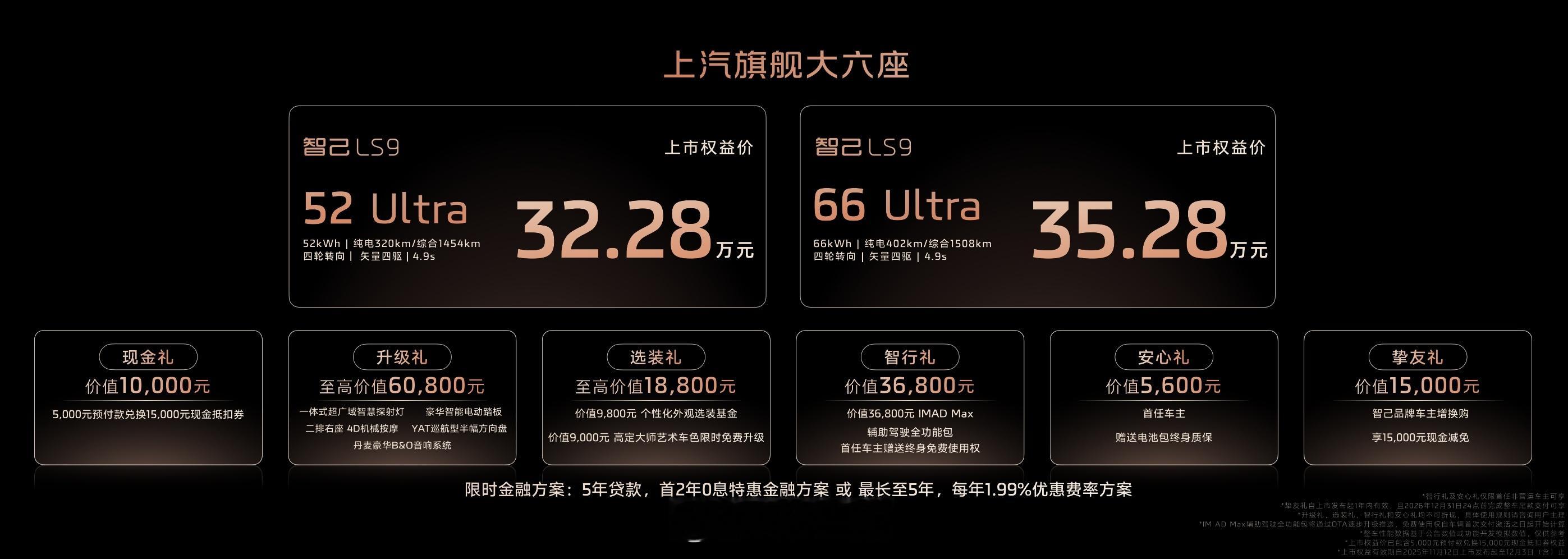 上汽旗舰·智己LS9 全系皆 Ultra, 入门即巅峰比小型车更灵活,比五座车更好开驾控、性能、智能、豪华,每一面皆旗舰!提供宁德时代52度和66度两种电池选择上市权益价32.28万到35.28万元,即刻开启大定和锁单!