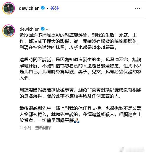 据台媒,与王子、粿粿同游美国的简廷芮、王品澔也被爆料出轨。11日,简廷芮和老公赖冠儒发文辟谣:“我们一直都很好,彼此间从没有任何介入、欺骗,更没有谁应该要原谅谁的说法”。随后,范姜彦丰被发现ins便利贴写着“说谎姊妹组”,疑似意有所指。