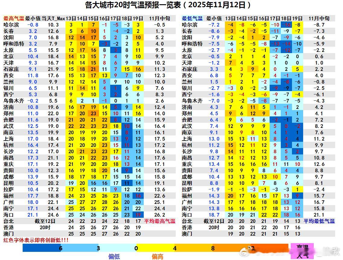 【气温】今天内蒙古吉林辽宁有6个站点气温到11月中旬最高纪录,辽宁义县冲上20℃。明天东北一带因为冷空气影响会出现降温,抑制过高的气温。之后气温还会再次上升。另外明后2天,强冷空气将在新疆北部登场。之后东移南下,对中东部地区重点影响时间在16-18日,大风降温为主,气温将从偏高转偏低,并创立秋后新低。总体看15日前后,将是中东部多地近期气温的高点。北方16日气温就会大幅下降,南方17-18日气温也将明显下降。北方多地最高气温的低点在17日、最低气温低点可能在18日晨。南方多地最高气温的低点在18-19日,最低气温低点可能在19日。这股冷空气有两个悬念,是否能引发寒潮预警,是否能推动北方全部入冬?未来继续关注。