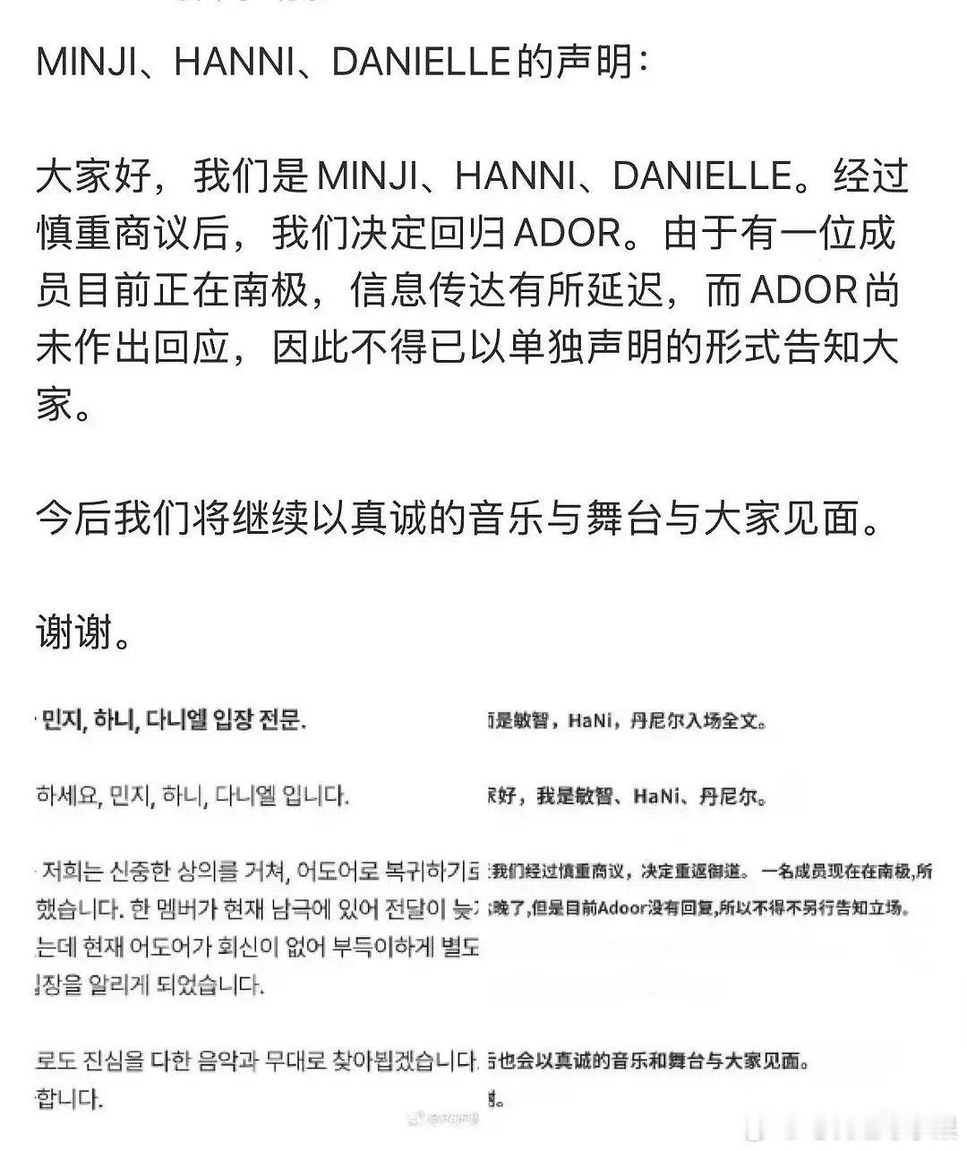 闹剧还没结束 爆料123的立场文是通过短信向记者单方传达的 ADOR并没有回复。。。