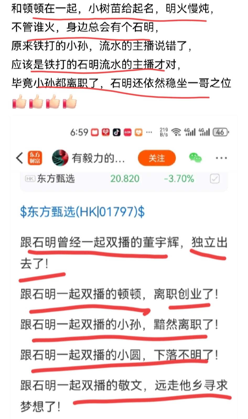 有些自媒体太缺德了!什么“东方甄选主播第二天唱好日子”纯属谣言! 在一个自媒体带节奏攻击东方甄选主播石明的内容底下!我又看到董宇辉粉丝提到“董宇辉走后第二天东方甄选主播唱好日子”!我特意搜查了下,发现也是自媒体瞎拼接的谣言”…目的就是煽动董宇辉粉丝的仇恨情绪! 谣言证据: 证据1、按照董宇辉粉丝发的所谓唱好日子的图片,我用图片智能搜索,搜到了东方甄选主账号里,有几个画面相似的小视频,也是这几个主播在唱歌。但是唱歌时间点是2024年1月19日 !评论区粉丝的评论时间也验证了时间是1月19日! 而,最有力的证据就是直播画面有一个春节倒计时“距离春节还有22天”,倒数下就是1月19日! 这个时间点已经是董宇辉走后的一个多月的时间点了,说董一涵走后第二天唱歌庆祝,纯属谣言! 证据2、董宇辉走后第二天,不就是众所周知的孙东旭从吉林回来时的那场直播吗?所谓“开会”的那场吗?什么董宇辉走后第二天就开直播庆祝唱歌?这么自相矛盾又明显的漏洞!相信这个说法的,都是些没带脑子容易信谣传谣的网民!@幽默谁还不是个宝宝了 所以说,网上有太多自媒体恶意拼接的谣言!这些流量寄生自媒体,为了流量没有道德底线,恶意搞对立、拉仇恨!煽动带节奏!