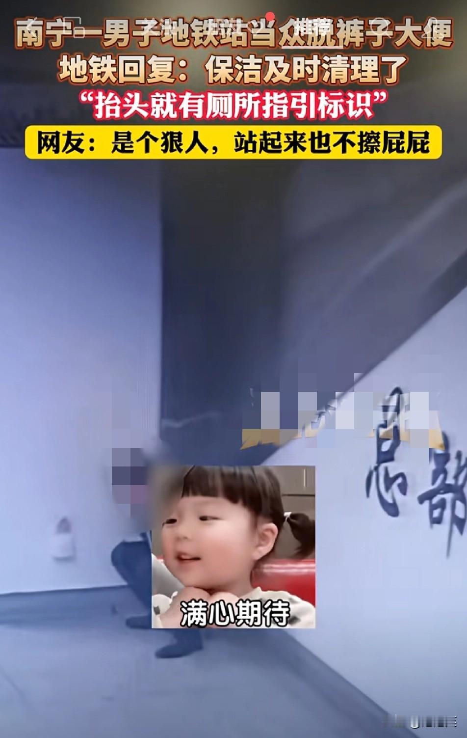 你说这事邪门不邪门 11月11日南宁某地铁站 一男子直接在角落脱裤排便,拉完起身就走,连清理都不带管的 地铁方回应称保洁已及时处理,而且站内抬头就能看到厕所指引 这波操作把网友看麻了 有人骂“没公德心” 也有人猜“是不是突发急病” 公共场合的文明底线,到底是“忍不住”就能突破的 可真遇上失控状况,又该咋平衡体面和规则?这分寸感也太考验人了