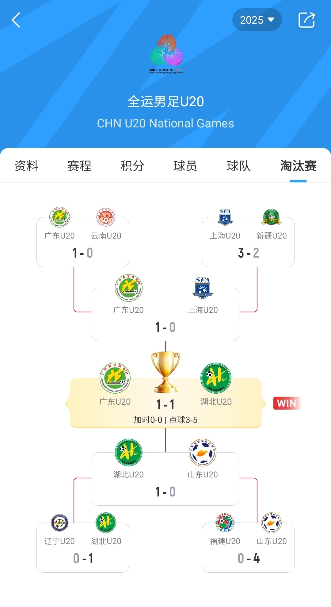 直播吧11月12日讯全运会男足U20比赛落下帷幕,最终湖北U20队首次夺得金牌,广东U20队银牌,上海U20队铜牌,山东U20队第4。