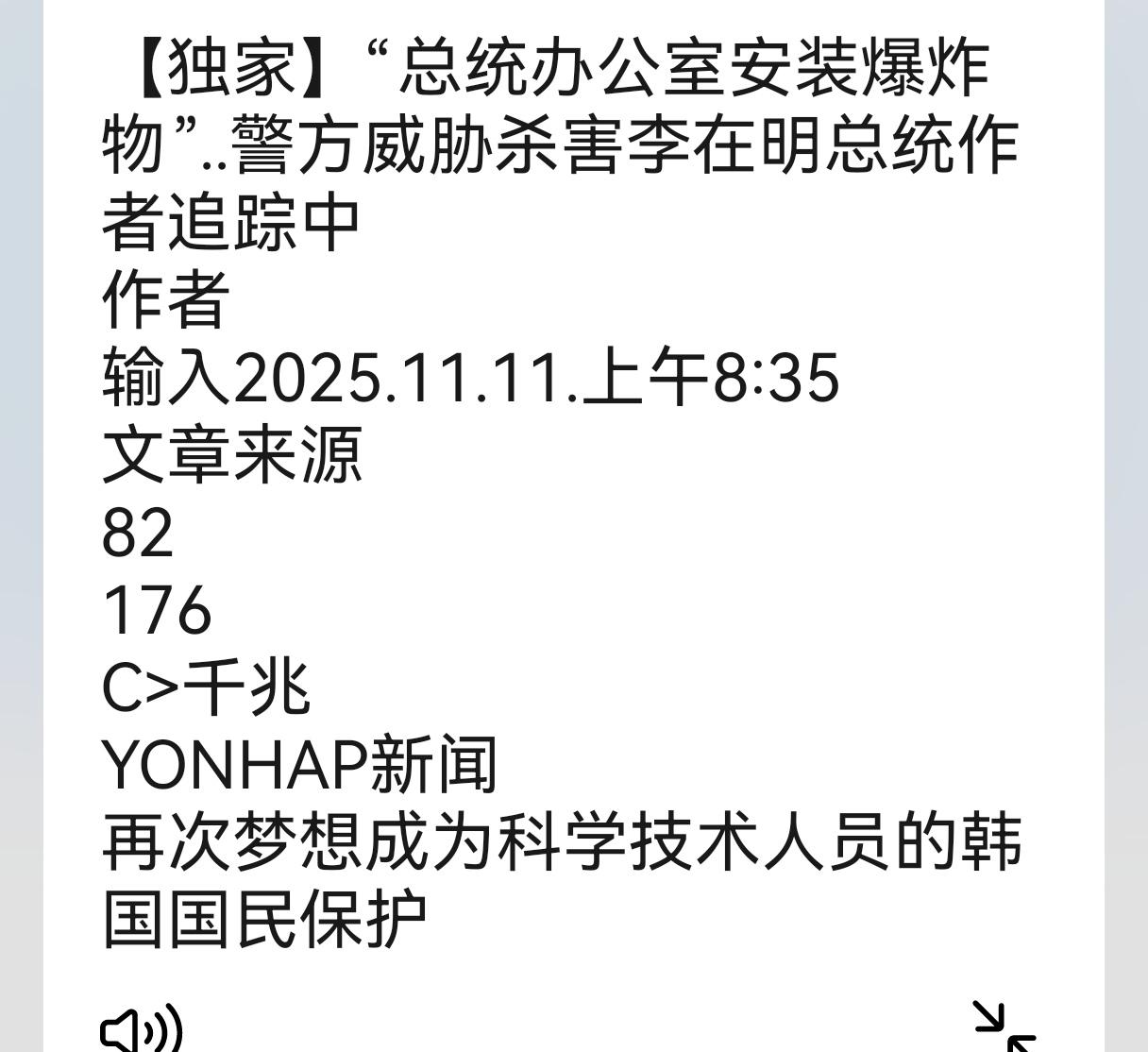 据韩国每日广播网(MBN)11月11日报道,10日中午12点10分左右,警方113举报中心网站上出现了内容为"要杀害总统,已在总统办公室安装爆炸物"的帖子。实际上这个“威胁令”是9号晚上有人在韩国警察厅布告栏发出的贴文。韩国总统真的是个高危行业,时时处处都有生命之忧。上一任总统已经身陷囹圄,而入主景福宫不到半年的李在明却实实在在地遇到了炸弹威胁,看来李在明这是动了什么人的蛋糕。也许和近期力主推进修改《国家安全法》有关。