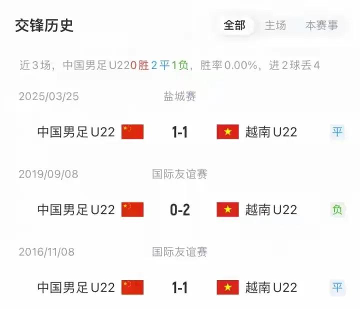 中国队真的连越南都打不赢了,输完泰国输缅甸、输完缅甸输越南,现在中国U22国青对越南已经4场不胜,2负2平,纯粹赢不了了,今晚成都“熊猫杯”主场作战,占据天时地利人和,依然赢不了,真的太差了,真的太让人失望了;看看中国队丢球,3人同时失误,獐子慌成马鹿,第一人让人家越南队边路轻松超车过了,第2个后卫第一次解围没能破坏,第3个汪仕钦门前解围失误踢跐了,3人竟然犯下这种低级失误,越南队轻松破门,中国0比1输越南在情理之中,主要是技不如人,中国队真的没办法破门。