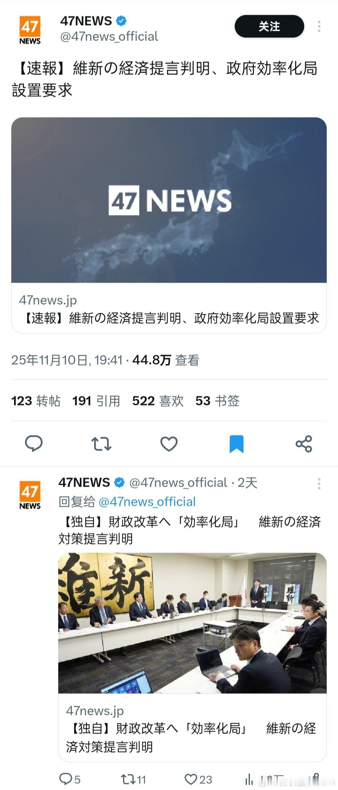 🔻日本维新会提议设立日本版的政府效率部。就日本的传真机速度,能成功吗?