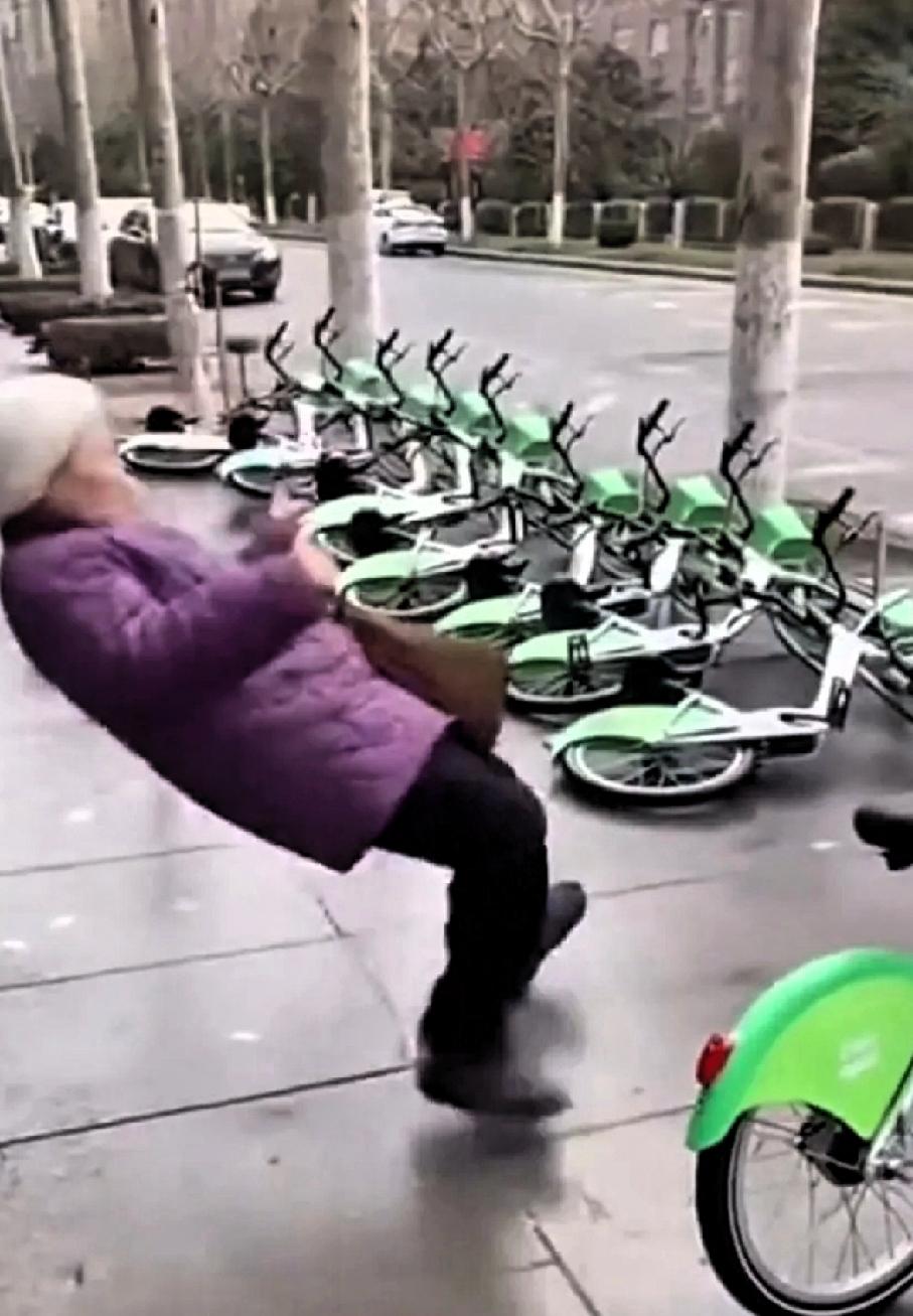 是老人变坏?还是坏人变老? 路边摆放整齐的单车,碍你老奶奶什么事了?一脚踹下去全部都顺倒一片,人在做天在看,举头三尺有神明,看:现报了吧! 这么大年纪了,不应该做这种不利于自己健康的坏事吧!人品和年龄没有关系, 这就是坏人变老了,骨子里的坏到死她都改变不了的啊!