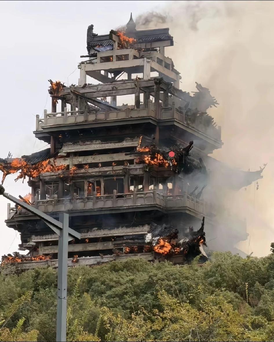 江苏永庆寺阁楼被烧得只剩框架本来觉得很可惜,但看到现代化的混凝土组件,就觉得没什么,看了永庆寺的介绍,之前已经不复存在了,这个也只是1993年开始重新修建的,历时6年建成,也不算古建筑,顶多算仿古建筑。