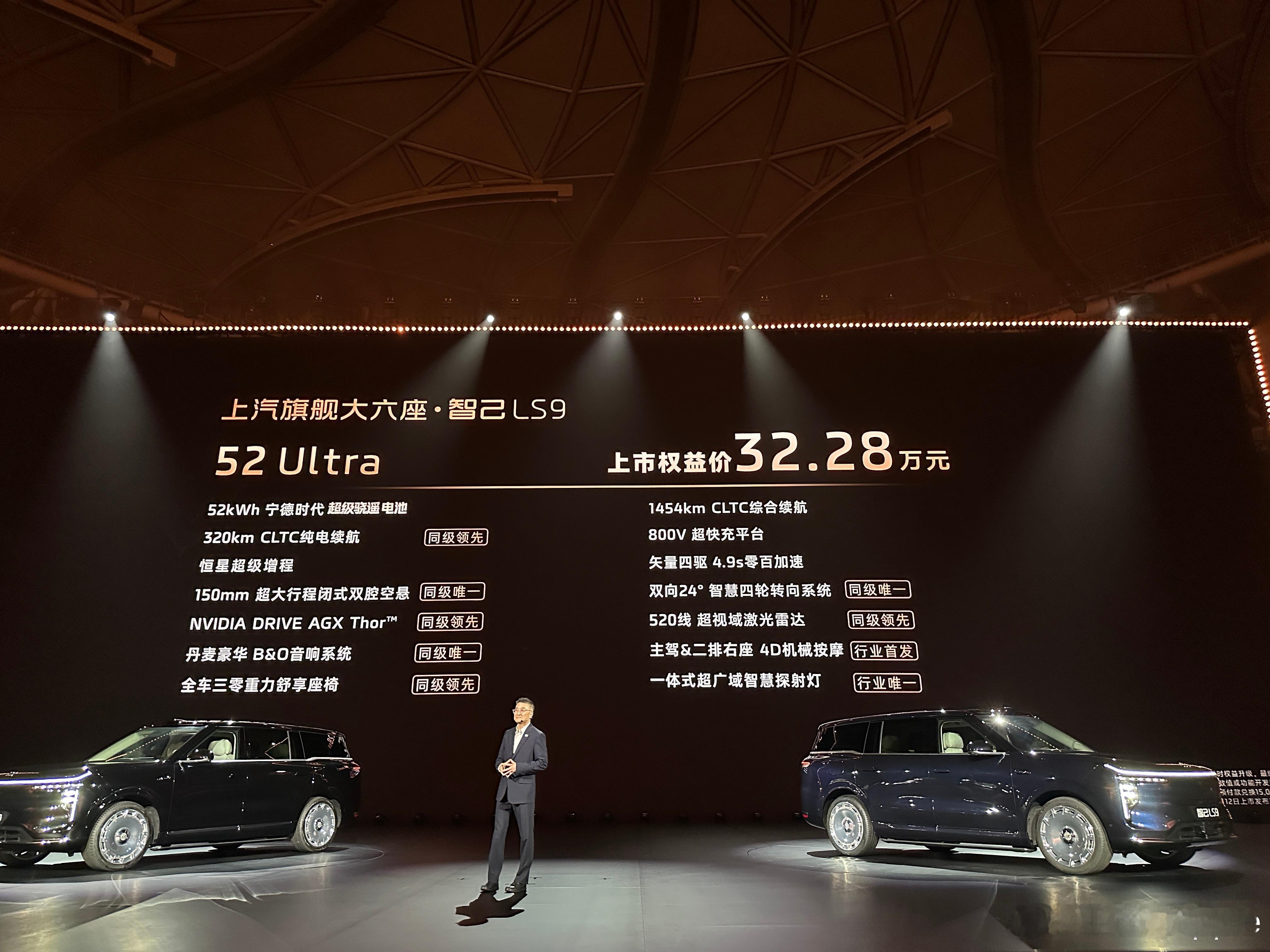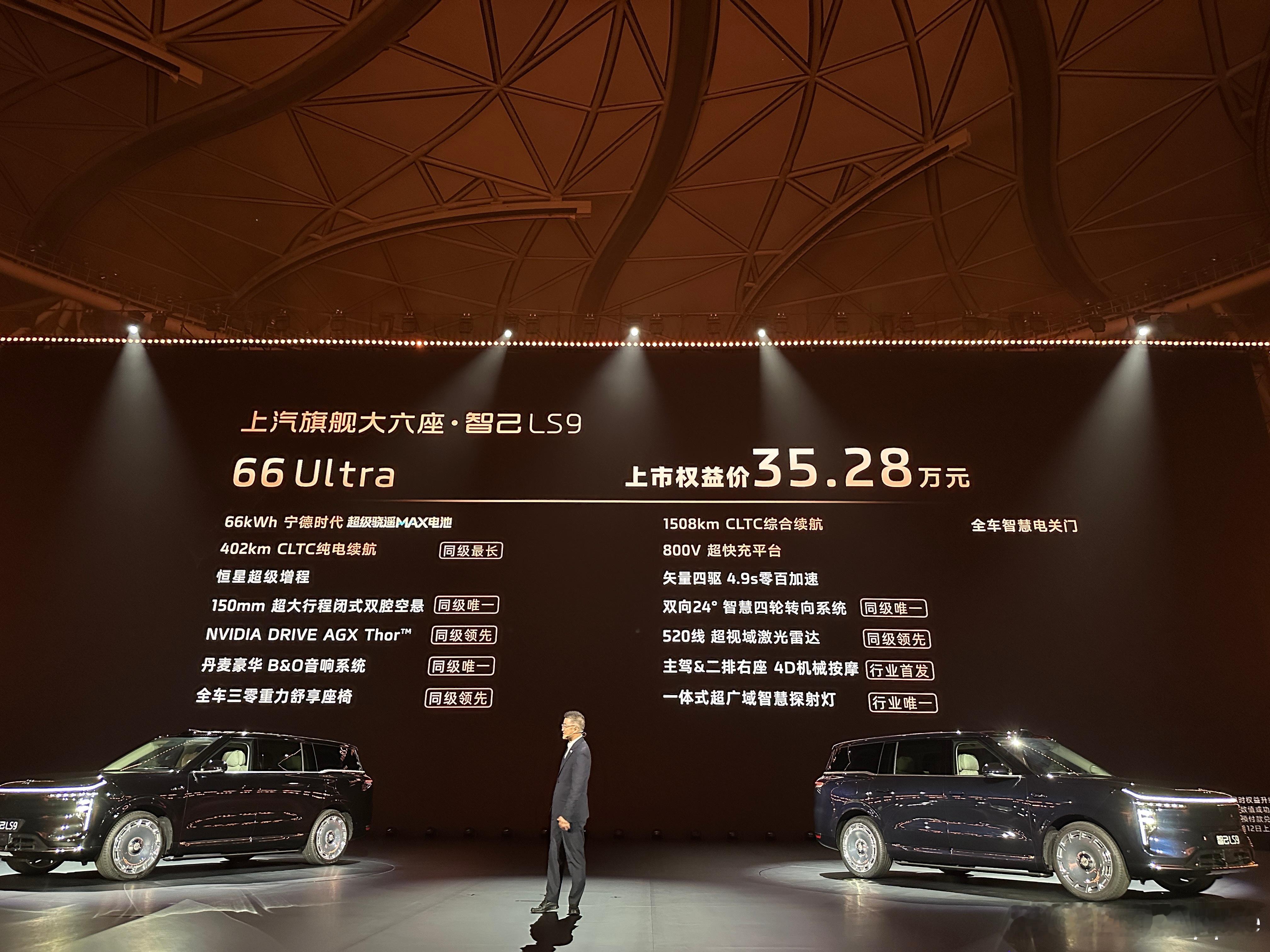 今晚智己LS9正式上市 32.28万起售52 Ultra版 上市权益价 32.28万 66 Ultra版 上市权益价 35.28万恒星超级增程1500km续航、灵蜥数字底盘+四轮转向、全车三零重力座椅,满配旗舰科技不打折!上市25分钟大定破5000台 这定价感觉可以直接闭眼冲!