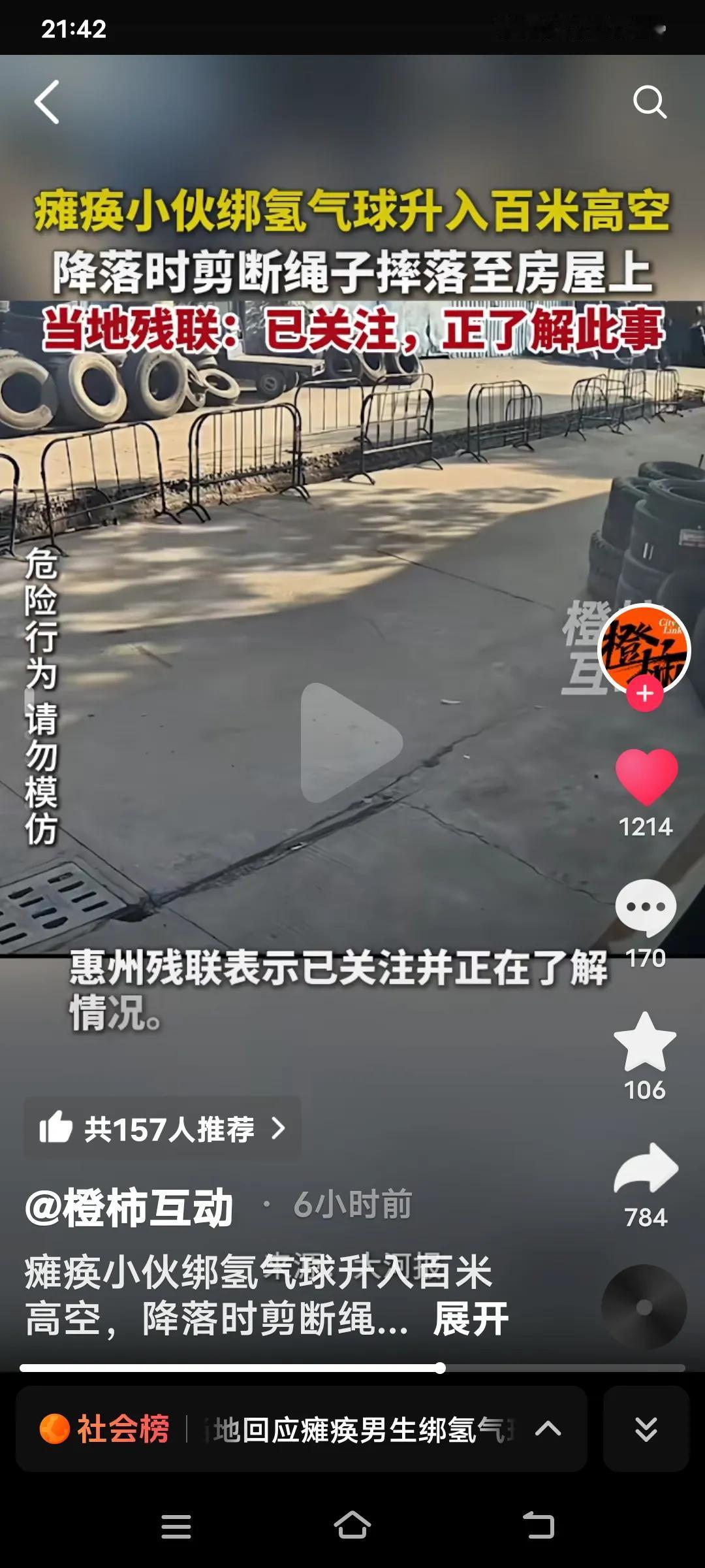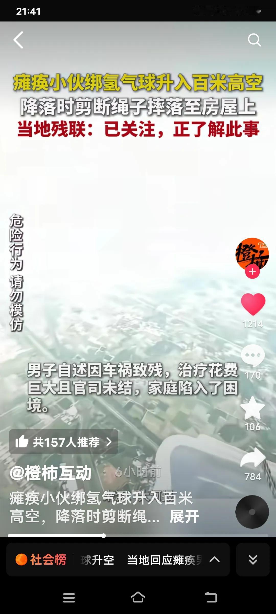 广东有位瘫痪小伙绑着氢气球升空,那惊险场景实在让人揪心!氢气球升到百米高空后,他