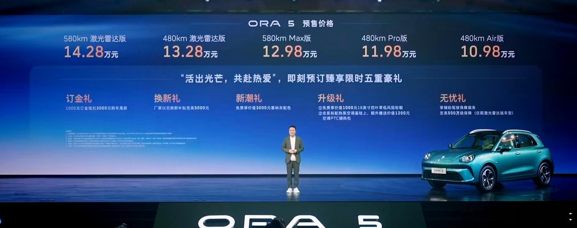 长城欧拉5预售价公布,续航480/580两款,有激光雷达可选,全新的全球化平台,兼顾安全、操控,以及能耗表现