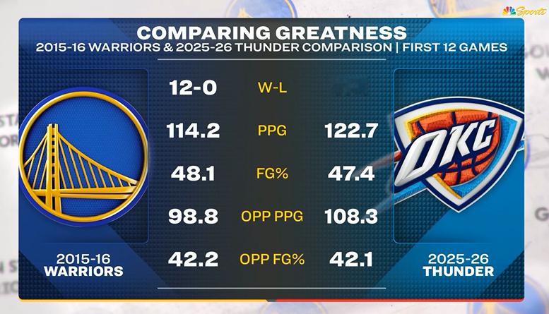 25-26赛季雷霆在面板数据上已经有点接近15-16赛季勇士