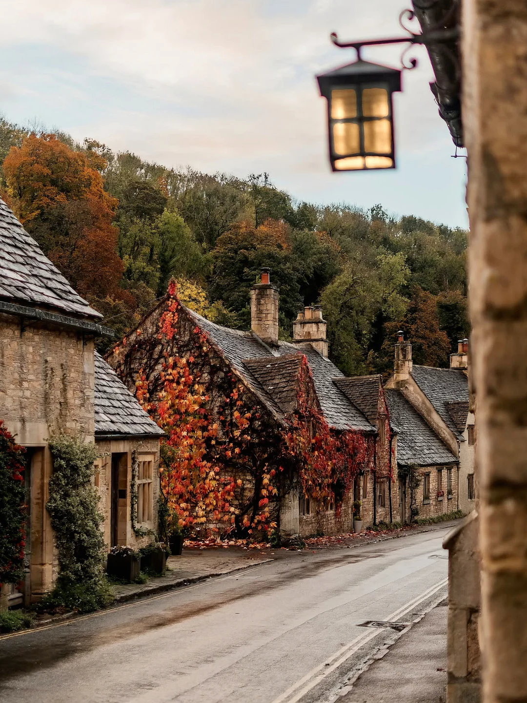 ➡️秋季亮点: 小镇周围的乡村道路在秋天风景绝佳,一片金黄。可以去逛古董店与画廊,在广场旁的传统咖啡馆里喝一杯热巧看秋色。一定要去圣爱德华教堂寻找那扇著名的“树门”,两棵古老的紫杉树与门洞交织在一起,在秋天显得神秘