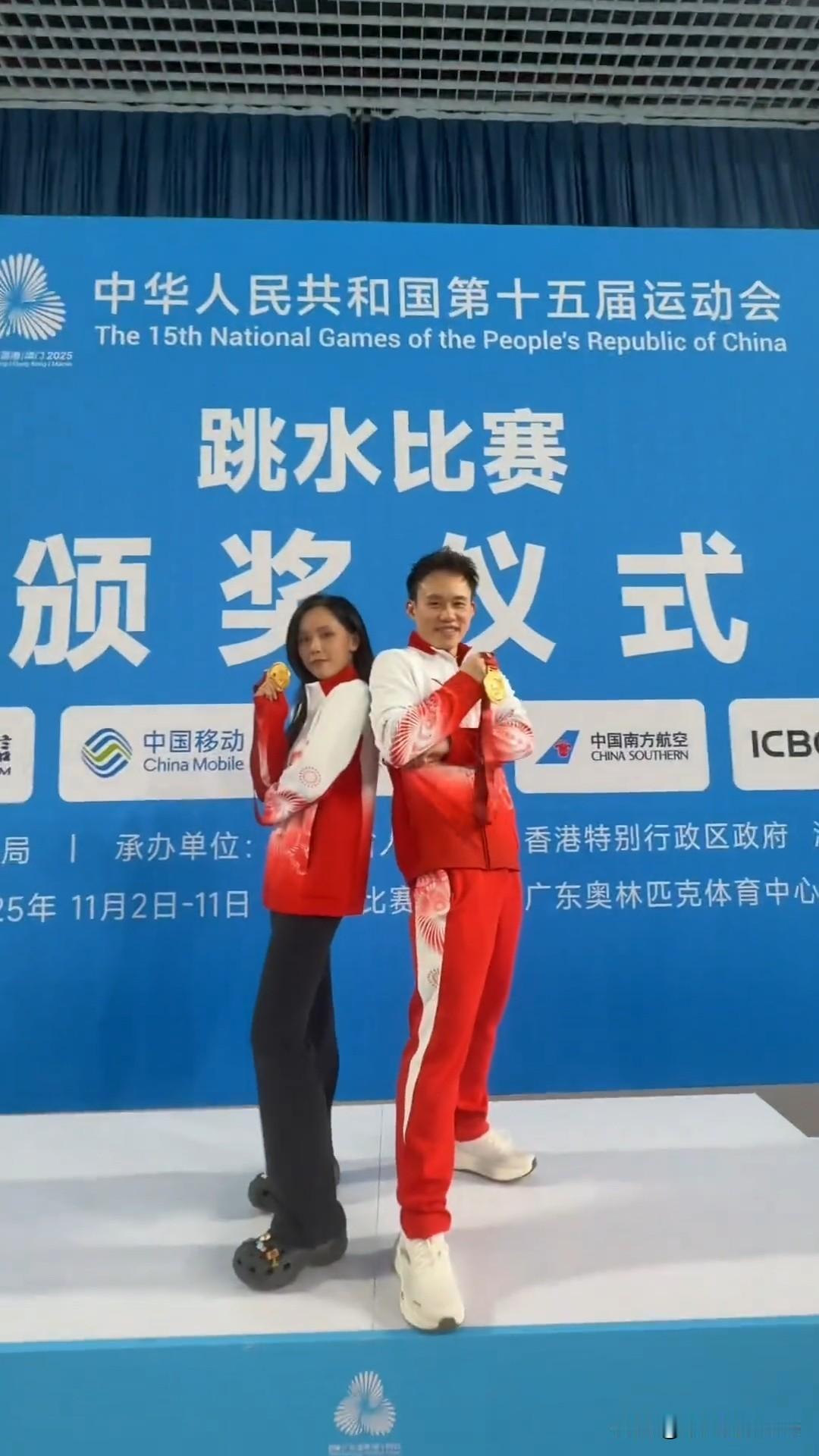 11月12日,谢思埸更新与妻子张莹的共创视频,并配文:“当然很帅啊!” 视频中,谢思埸和妻子在跳水比赛领奖台合影留恋,张莹换上了广东队的队服,两人真的好恩爱呀。 谢思埸比赛期间,妻子张莹带着孩子到现场为他加油打气,全红婵还临时帮他们照看孩子。 谢思埸已经29岁了,他在本届全运会夺得两块金牌,其实他身上也有伤,取得如此佳绩确实不易。