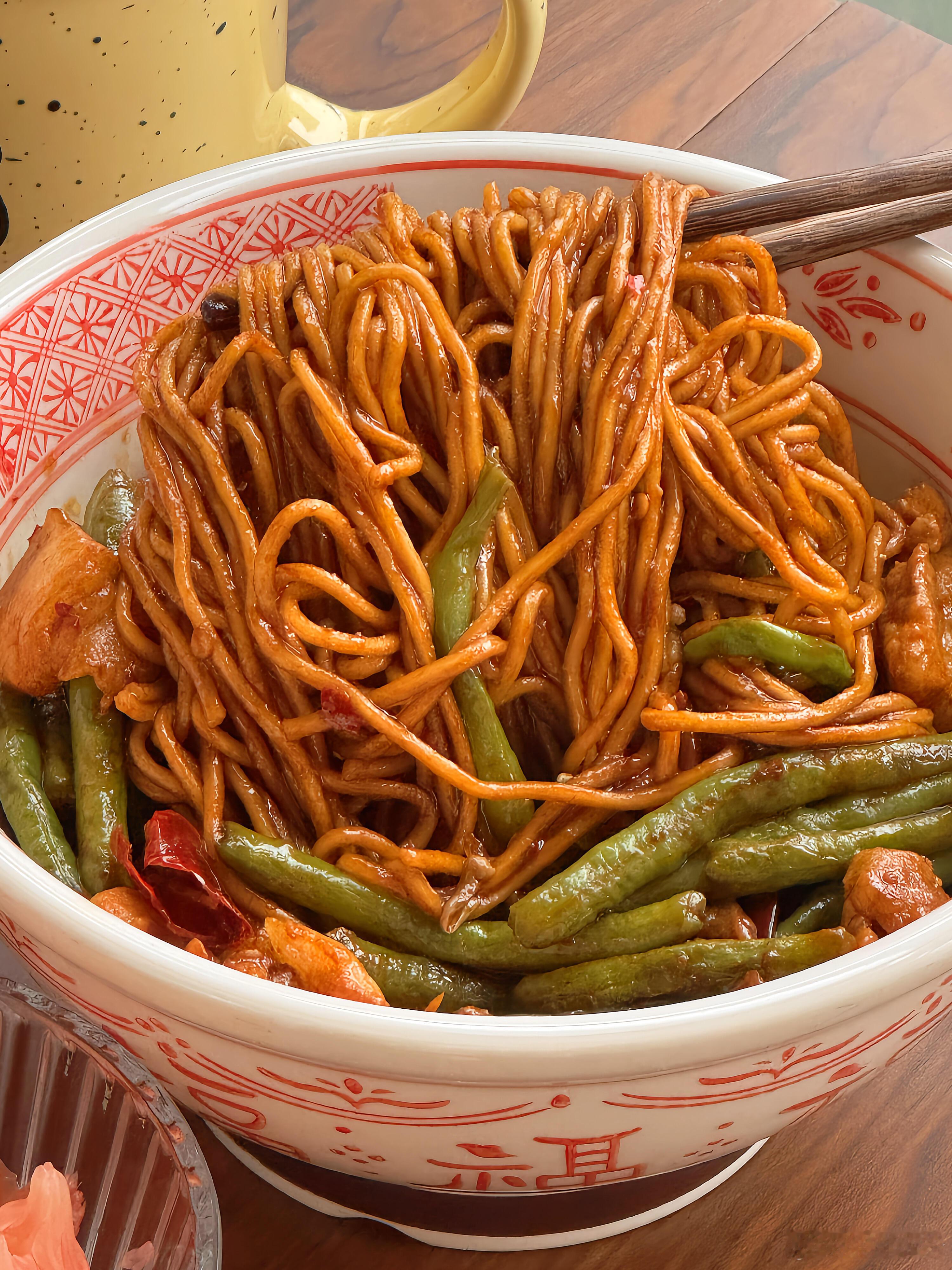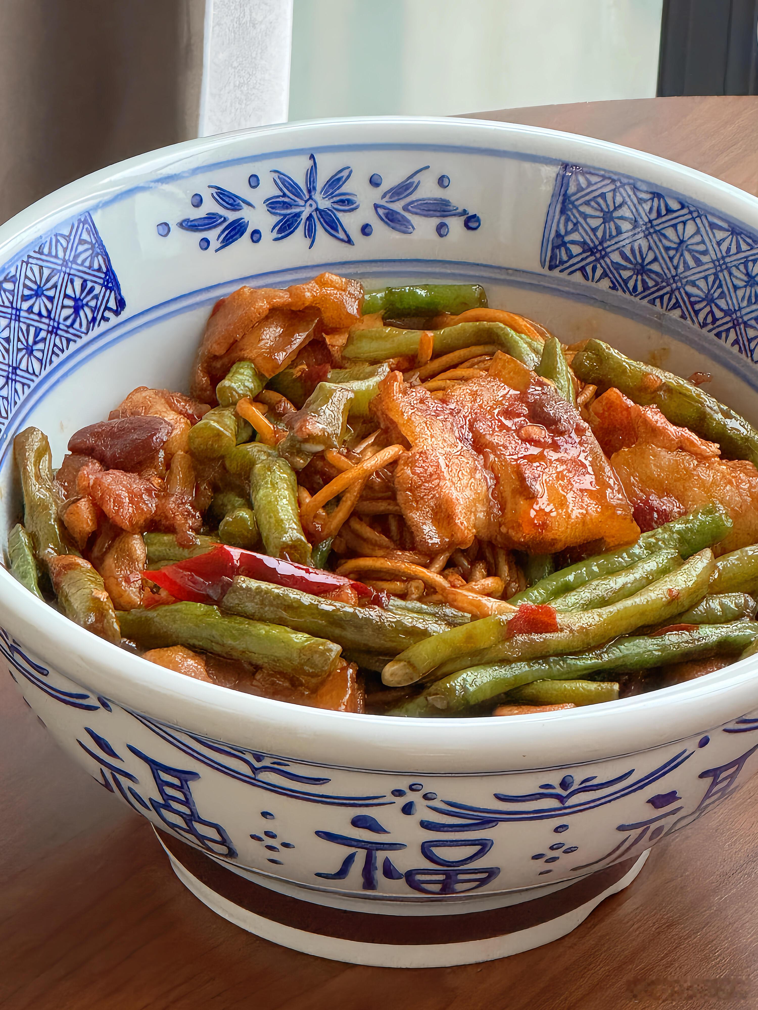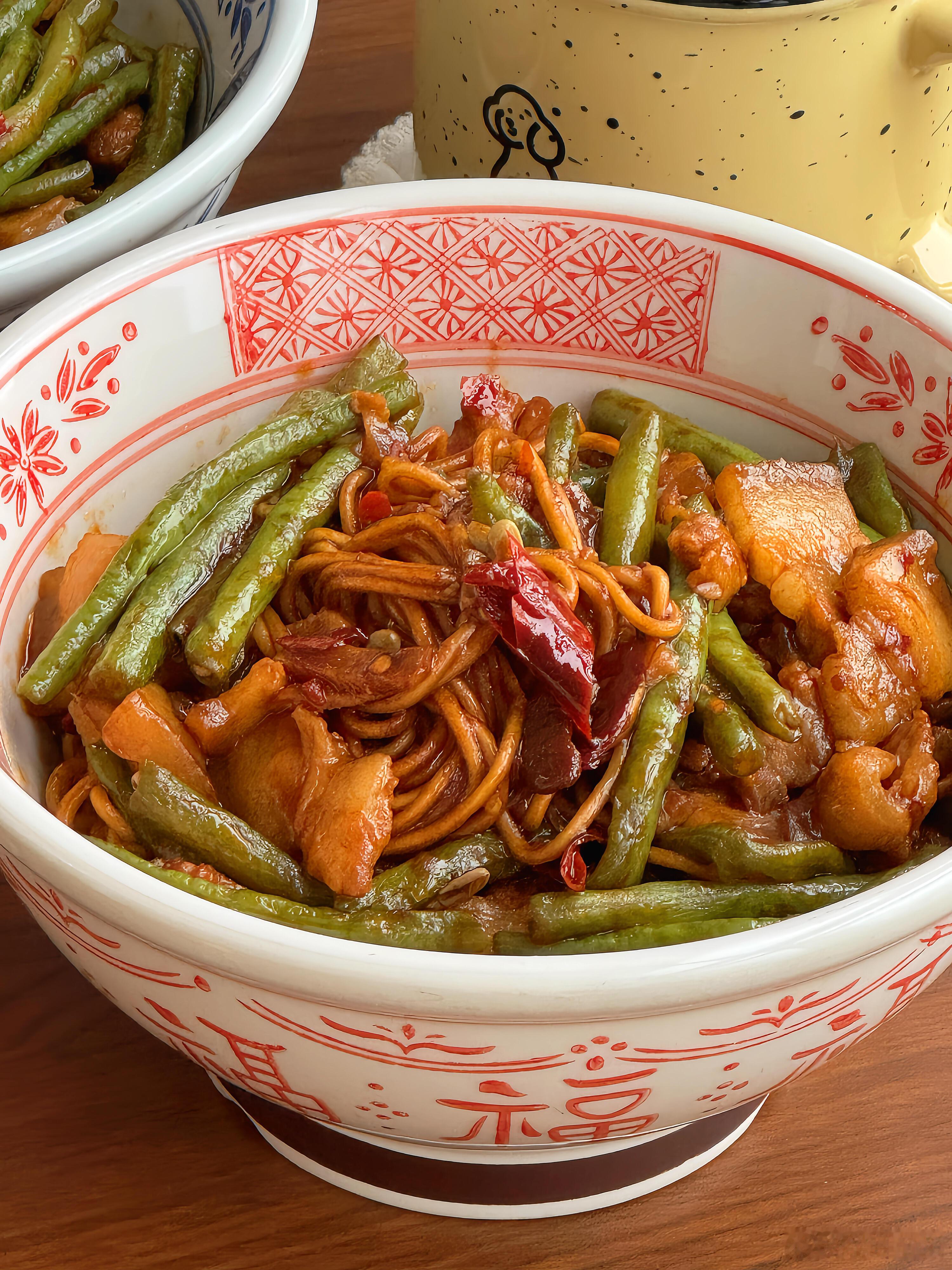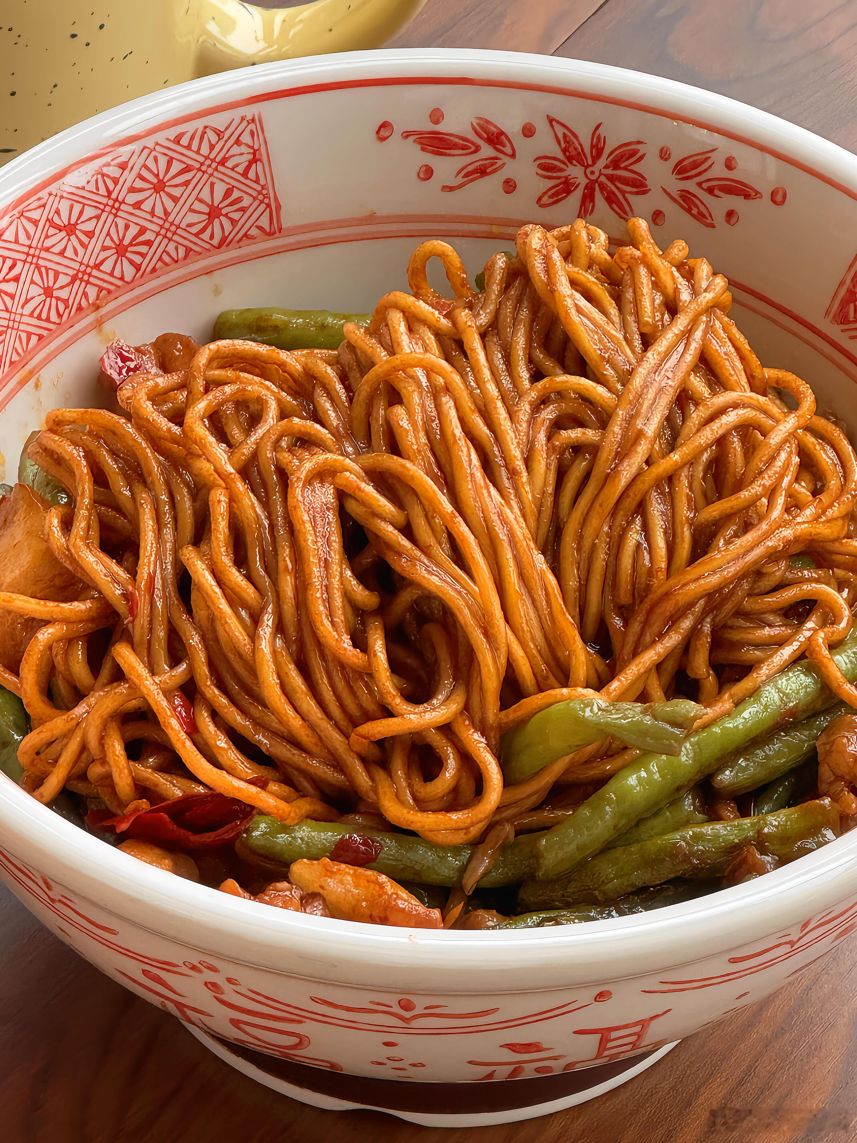 降温天不想吃外卖?那就试试这道五花肉豆角焖面🍝,绝对能让你幸福感爆棚!每一根面条都吸饱了浓郁的汤汁,咸香中带着微微的辣味,豆角的清新与五花肉的醇厚完美融合,吃上一碗,既有肉又有菜,满满当当的满足感,让你直呼过瘾🤤下面就把详细教程分享给大家👇,快来做上一大锅,好好犒劳一下自己吧!【五花肉豆角焖面】🥩食材准备:五花肉、豆角、碱水面、姜、蒜、干辣椒📝具体步骤:1. 先将锅烧热,倒入少许油,待油热后放入五花肉片。慢慢煸炒,直到五花肉的油脂被逼出,这样可以让五花肉吃起来更香,而且不会过于油腻。2. 放入姜片、蒜粒和干辣椒,与五花肉一起翻炒。姜蒜的香味和干辣椒的辣味瞬间被激发出来,为这道菜奠定了浓郁的味道基础。3. 倒入豆角继续翻炒,直到豆角断生。豆角的清脆口感在此时逐渐变得软糯,吸收了肉香和调料的香味。4. 加入一勺郫县豆瓣酱,两勺生抽、一勺老抽、一勺蚝油以及适量的糖。翻炒均匀,让每一根豆角和每一片五花肉都均匀上色,丰富的酱料赋予食材诱人的色泽和醇厚的味道。5. 接着倒入半没过食材的清水,盖上锅盖,开大火将其煮开。让食材在水中充分炖煮,释放出各自的香味,相互交融。6. 煮好后,小心地盛出半碗汤汁放在一旁备用。这半碗汤汁可是一会儿焖面的关键。7. 在煮好的食材上均匀地铺上厚厚一层碱水面,然后再把刚才盛出的汤汁均匀地淋在面条上。8. 再次盖上锅盖,大火煮开后转中小火,焖煮三四分钟。这个过程中,面条会慢慢吸收汤汁,变得软嫩入味。时间一到,搅拌均匀,一道美味的五花肉豆角焖面就大功告成啦!