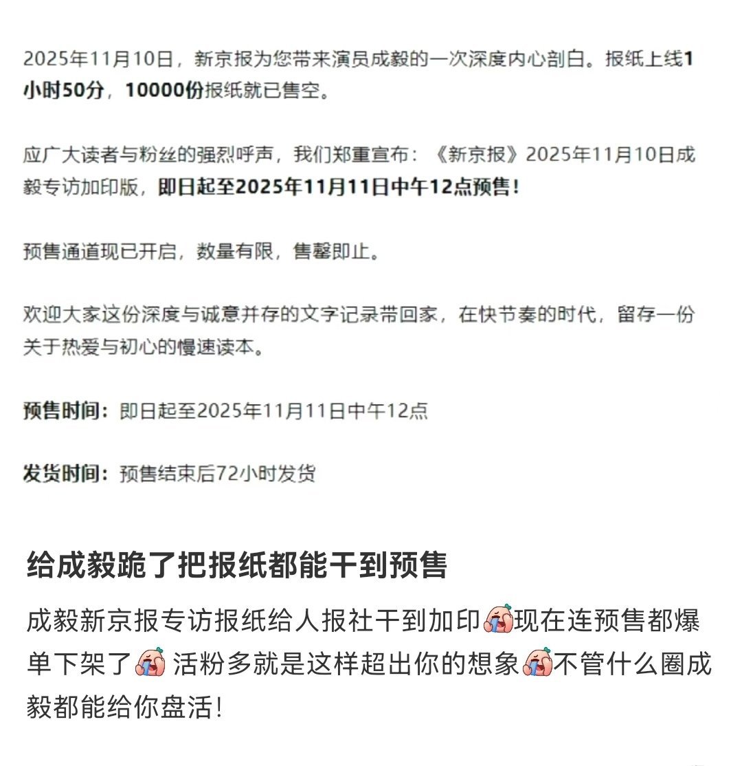成毅,一个把报纸都能给你盘活到爆单预售的人成毅新京报专访报纸把报社干到加印预售,业内认证成毅的市场号召力商业价值不可估量!