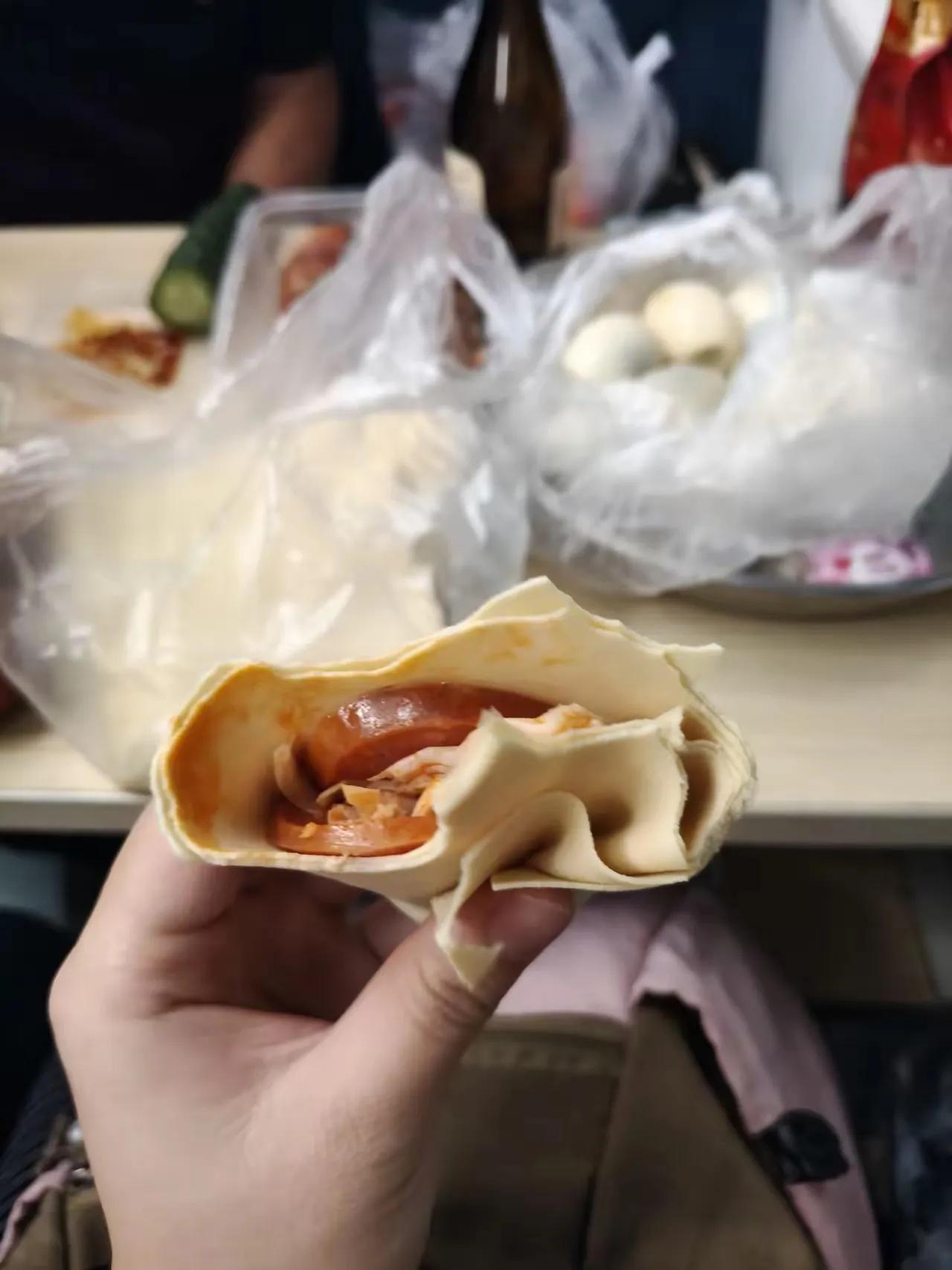 看一位网友发的东北大哥坐火车自带好吃的一大堆,走一路吃一路,吃的真过瘾,看着真眼馋。