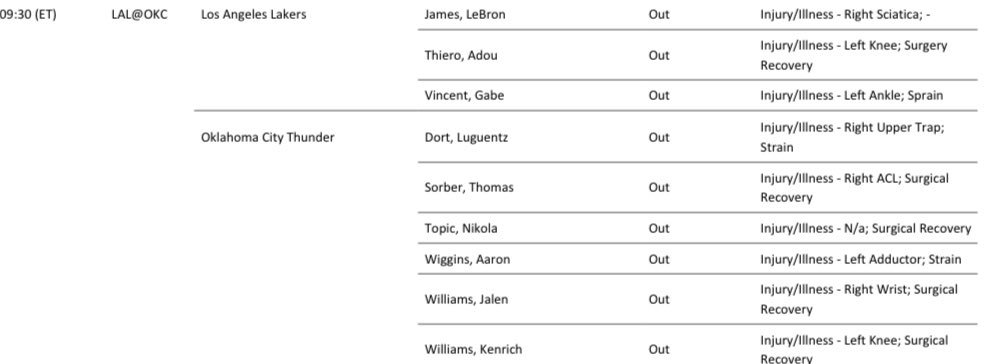 雷霆公布了今天比赛的伤病报告,杰伦,多尔特和威金斯依然缺席。编辑by小魏