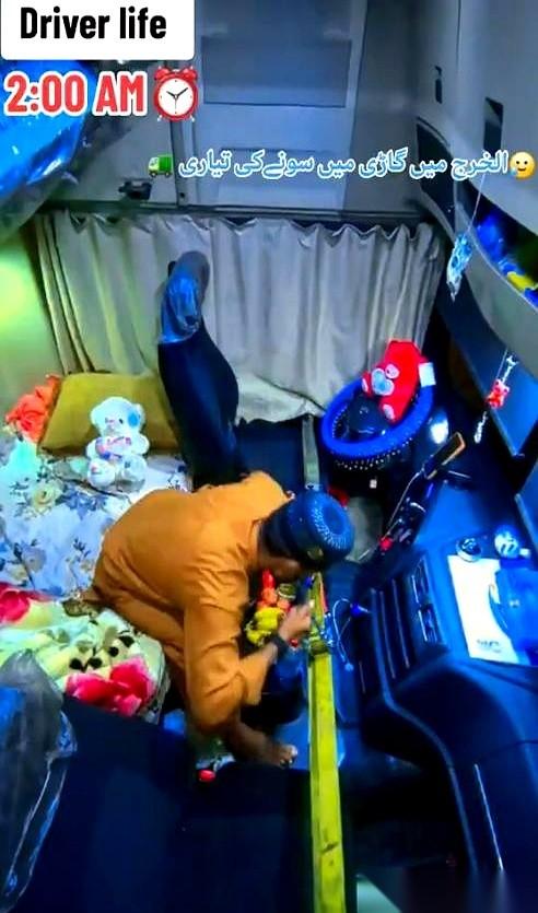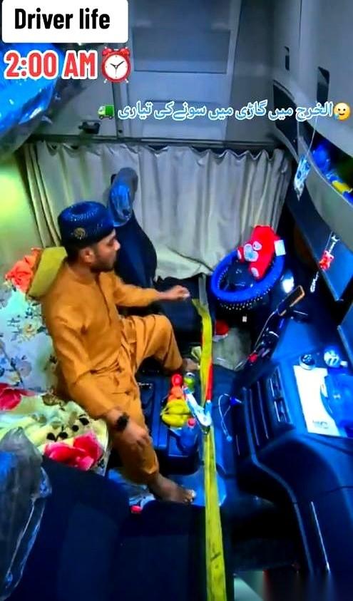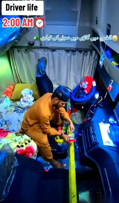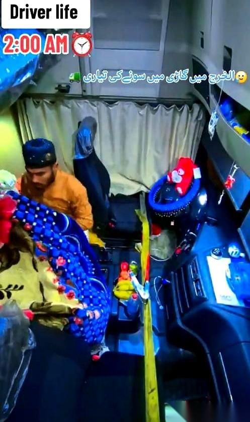 用一根安全带,把两边的车门死死绑在一起。 就这么把自己“反锁”在卡车驾驶室里。 这是巴基斯坦一个卡车司机,能睡个安稳觉的唯一办法。 你可能会觉得,至于吗?太简陋了吧。 但你想想,漫漫长夜,荒郊野外,车上拉着的是他全部的身家,是全家人的嚼谷,甚至是老板押上一切的托付。 外面,不知道有多少双眼睛,像狼一样盯着。 一根破安全带,能有多大用? 但这是他能给自己的,唯一的“结界”。 我们天天在网上喊“没有安全感”。 抱怨KPI,抱怨老板,抱怨今天的外卖凉了,抱怨新出的手机又没抢到。 我们躺在舒服的床上,觉得全世界都欠自己的。 而他呢? 他想要的“安全感”,就是能睡个囫囵觉,天亮了,睁开眼,方向盘还在,四个轮胎还在,一车的货还在。 这就够了。 那根安全带,绑住的哪是车门啊。 那是他作为一个普通男人,对生活最卑微,也最坚韧的承诺。 有时候真觉得,我们所谓的“生活”,在某些人面前,不过就是个矫情的词儿。 你追求的是诗和远方,人家只求活着,就已经拼尽了全力。 这不叫惨。 这叫生活。是那种把牙打碎了,还得和着血吞下去,然后第二天太阳升起,继续发动引擎的生活。