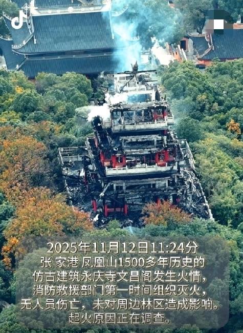 11月12日,江苏张家港千年永庆寺突发火灾,古建被火吞噬至只剩框架。 这座始建于东吴、距今1500余年的“南朝四百八十寺”之一,明清六次修缮,曾占地86亩。目前景区已暂停营业,官方通报明火已扑灭,无人员伤亡,千年古迹遭此变故,令人惋惜如珍宝蒙尘!