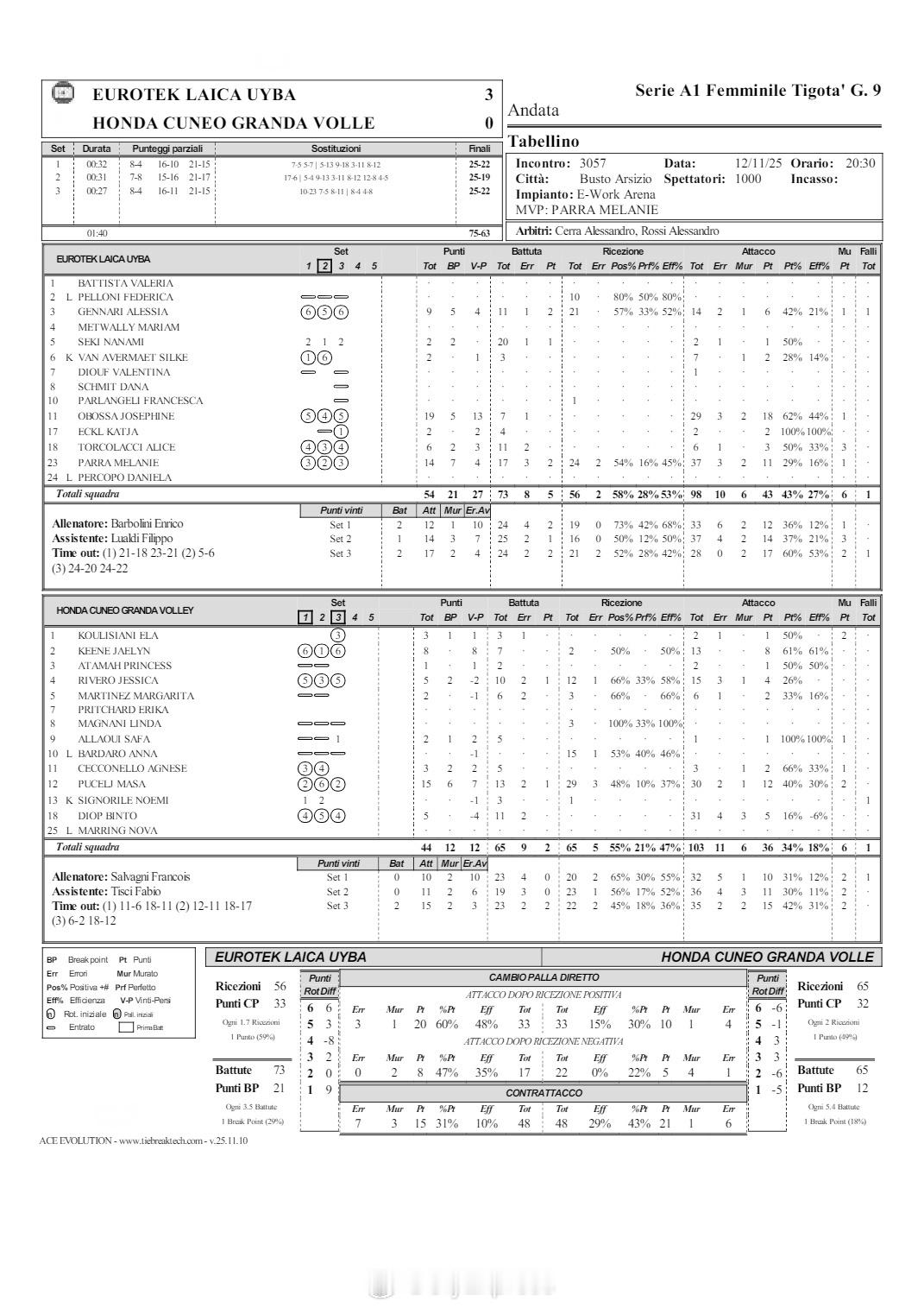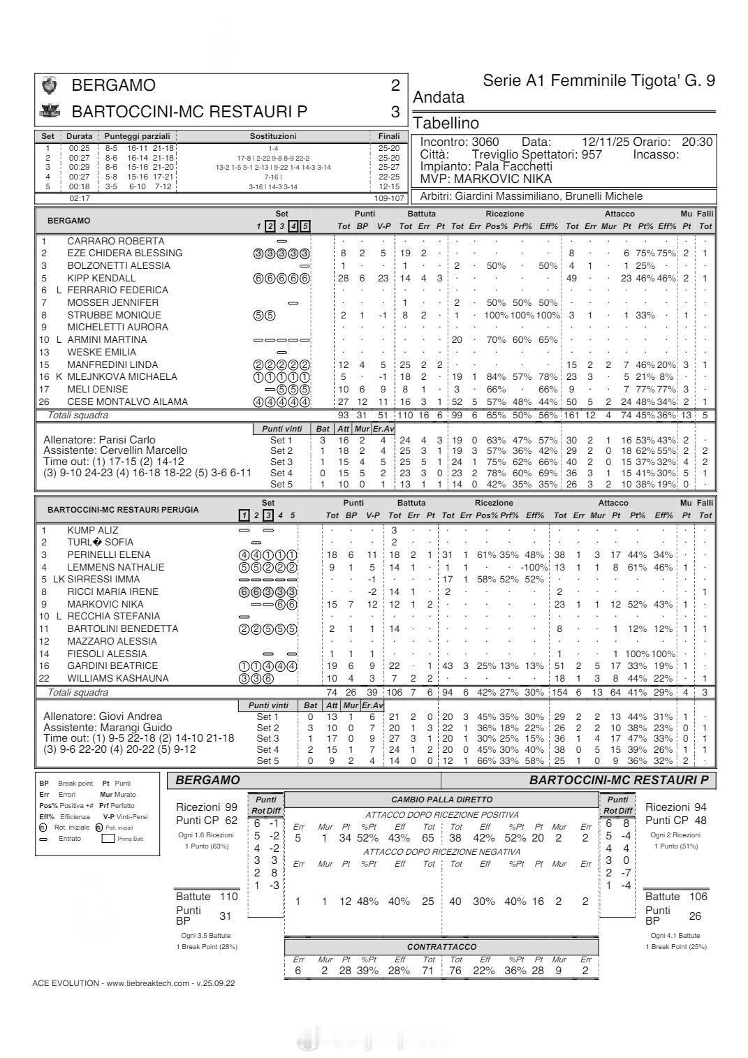 【意甲女排圣乔瓦尼和贝尔加莫惨遭大逆转】 11月12日,意甲女排第9轮,垫底的升班马圣乔瓦尼主场在先胜两局的情况下惨遭翻盘,2-3(25-20/25-20/25-27/23-25/12-25)惜败皮内罗洛,无缘赛季第二胜。布拉奇和皮奥维桑各22分、科楚里娜15分、卡鲁索11分、奥托拉尼10分,MVP德奥多里科23分、达维斯基巴12分、哈尔宾11分、希尔维10分。贝尔加莫主场2-3(25-20/25-20/25-27/22-25/12-15)同样惨遭大逆转,惜败佩鲁贾。基普28分、蒙塔尔沃27分、曼弗雷迪尼12分、梅利10分,加尔迪尼19分、佩里内利18分、MVP马尔科维奇15分、威廉姆斯10分。布斯托阿斯奇奥主场3-0(25-22/25-19/25-22)零封库内奥。