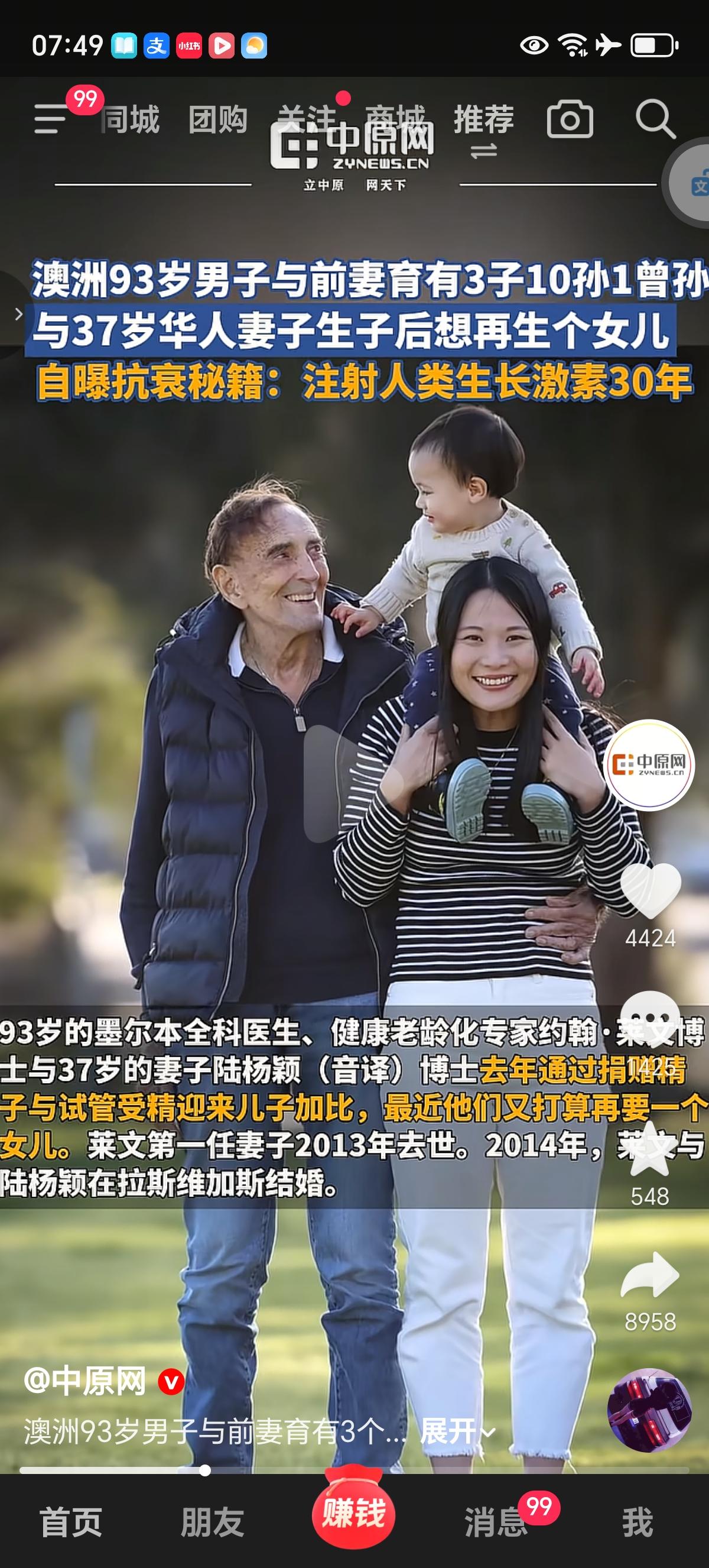 澳洲93岁男子,墨尔本的全科医生兼健康老龄化专家约翰·莱文和37岁的华人妻子生子后想再生个女儿。他和前妻携手走过57年,育有3个儿子,膝下早就有了10个孙辈和1个曾孙女,,堪称“五世同堂”的雏形。 2013年前妻去世后,莱文本以为晚年就这么平静度过,没想到缘分来得猝不及防,结识了37岁的华人女子陆杨颖(音译)。两人一见如故,2014年就走进了婚姻殿堂,56岁的年龄差在他们眼里根本不是事儿。2024年2月,夫妻俩通过捐赠精子和试管婴儿技术,顺利生下了儿子加比,如今宝宝还在襁褓中,他们就马不停蹄地重启了试管流程,目标明确:再拼一个女儿,凑成“好”字。陆杨颖也特别坦诚,说自己早就做好了未来可能独自抚养孩子的准备,这份勇气也是没谁了。 最让人好奇的,还是莱文93岁还能保持旺盛精力的秘诀。作为健康专家,他可没藏着掖着:坚持注射人类生长激素整整30年,日常饮食全是素食,烟酒一口不沾,每周还雷打不动去两次健身房锻炼。难怪他现在不仅能正常坐诊,思维还特别敏捷,完全不像年过九旬的老人。 不过这事儿也引发了不少争议:有人觉得56岁年龄差太离谱,质疑陆杨颖是图钱财;也有人觉得93岁高龄生育太冒险,对大人孩子都不负责。面对这些质疑,陆杨颖直接澄清:当初和莱文相遇时,他正处于破产状态,两人能走到一起全是因为真爱,而且他们觉得“人生苦短,让自己快乐才最重要”。 其实不管外界怎么看,莱文用自己的生活方式证明了“年龄只是数字”,而夫妻俩为了想要的家庭勇敢尝试,这份坚持也挺让人佩服的。至于注射生长激素的抗衰方式,咱普通人可别盲目模仿,毕竟每个人的身体状况不同,还是得遵医嘱。最后也只能祝福他们,希望能顺利实现生女儿的愿望,一家人幸福生活呀!