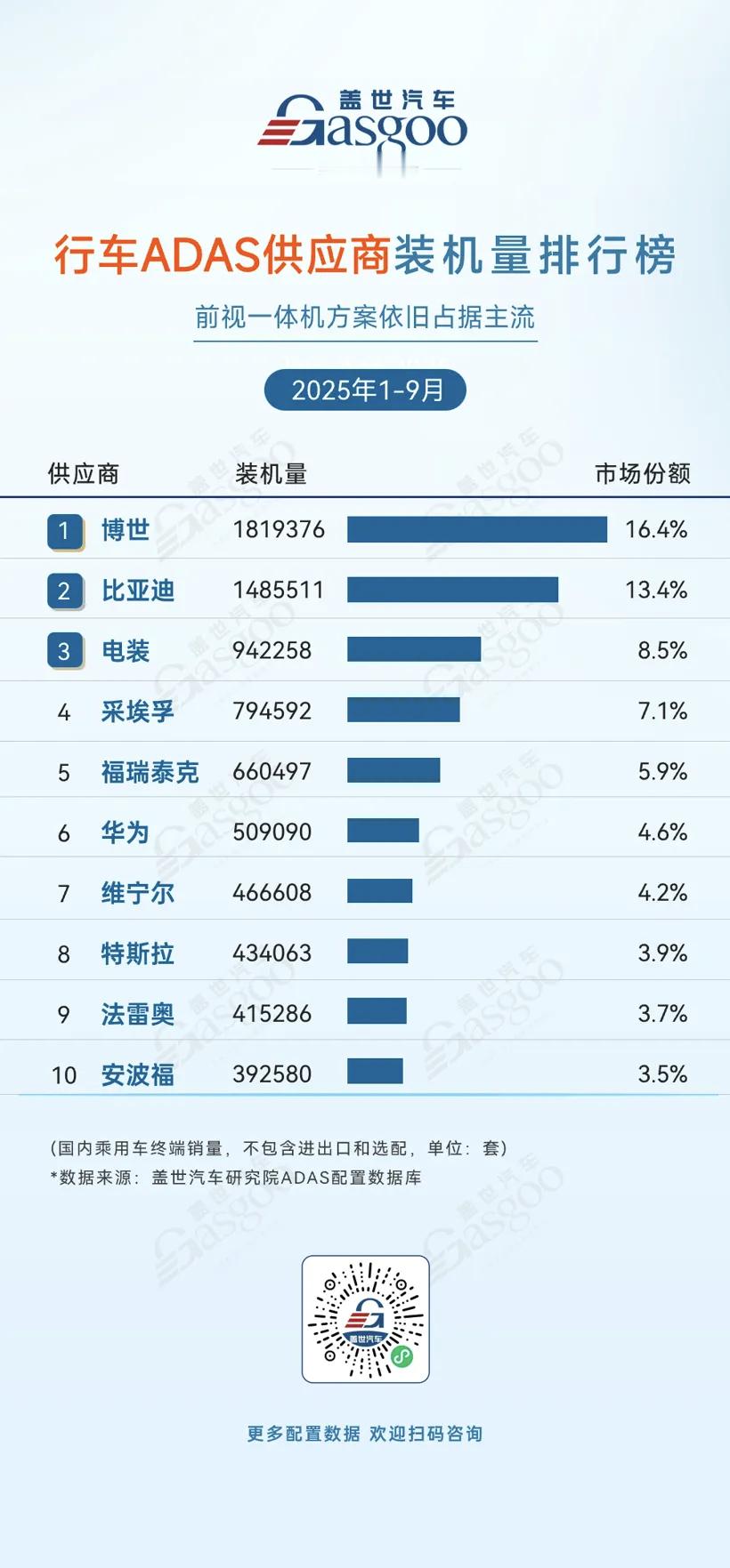 两张图对比一下挺有意思的,激光雷达1-9月装机量华为保持第一,但是在ADAS上还是传统供应商的天下。辅助驾驶,或者说是好用的辅助驾驶渗透率远没有我们想的那么高