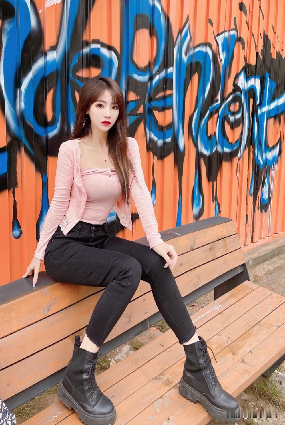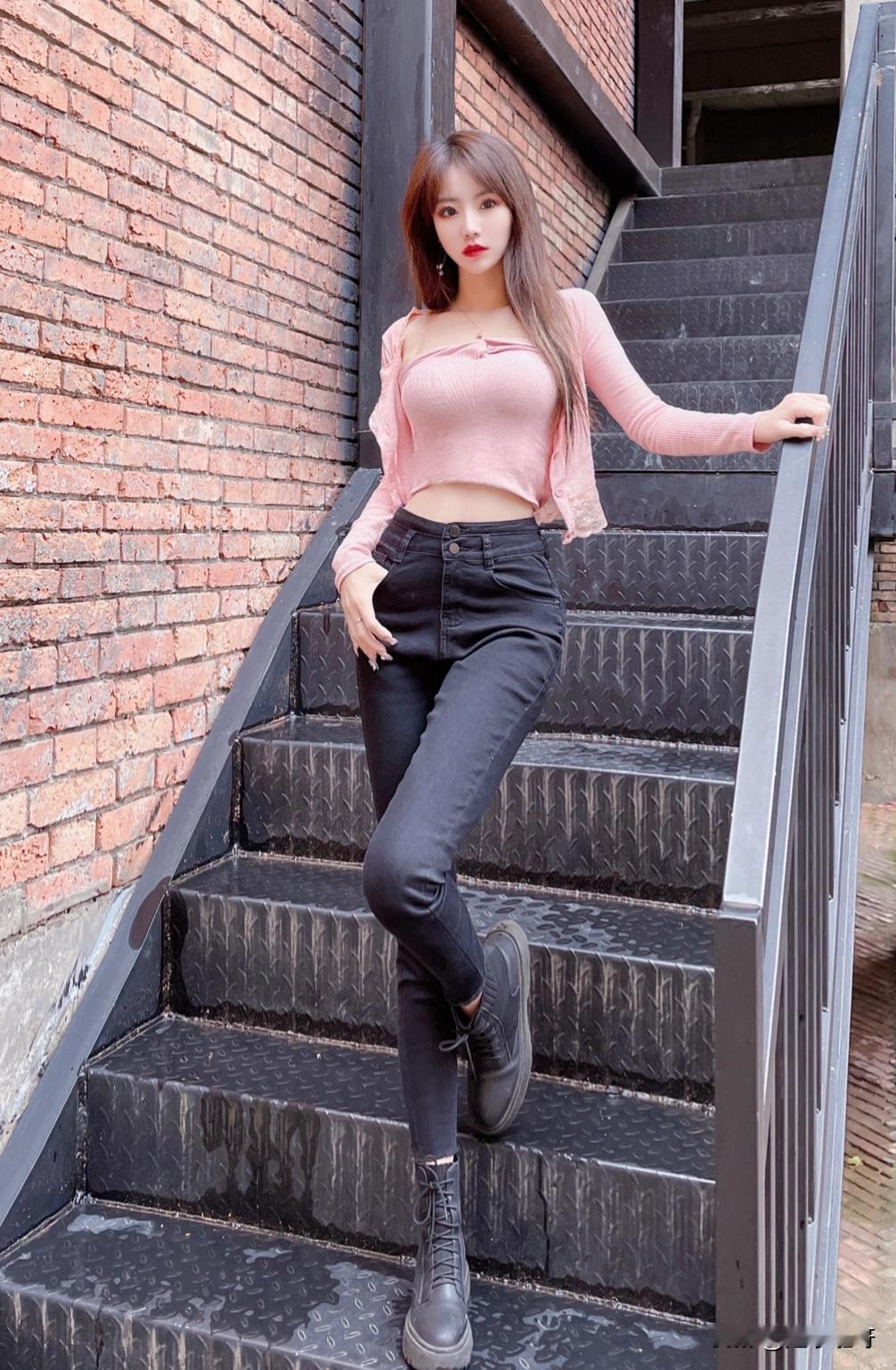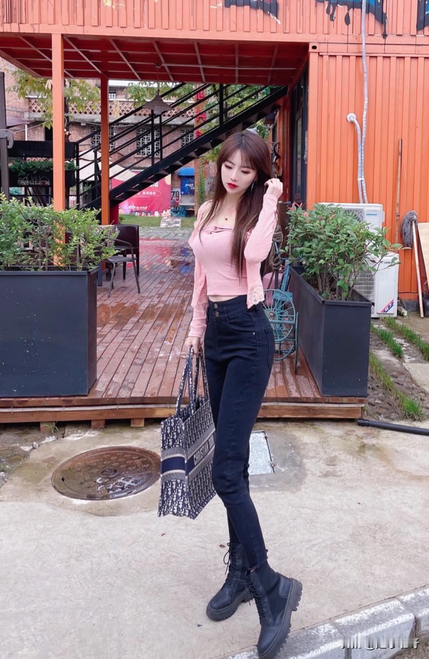 粉色解锁少女感,黑色牛仔裤稳住随性态,简单搭配却藏着小心机,美得不费力才最撩人。