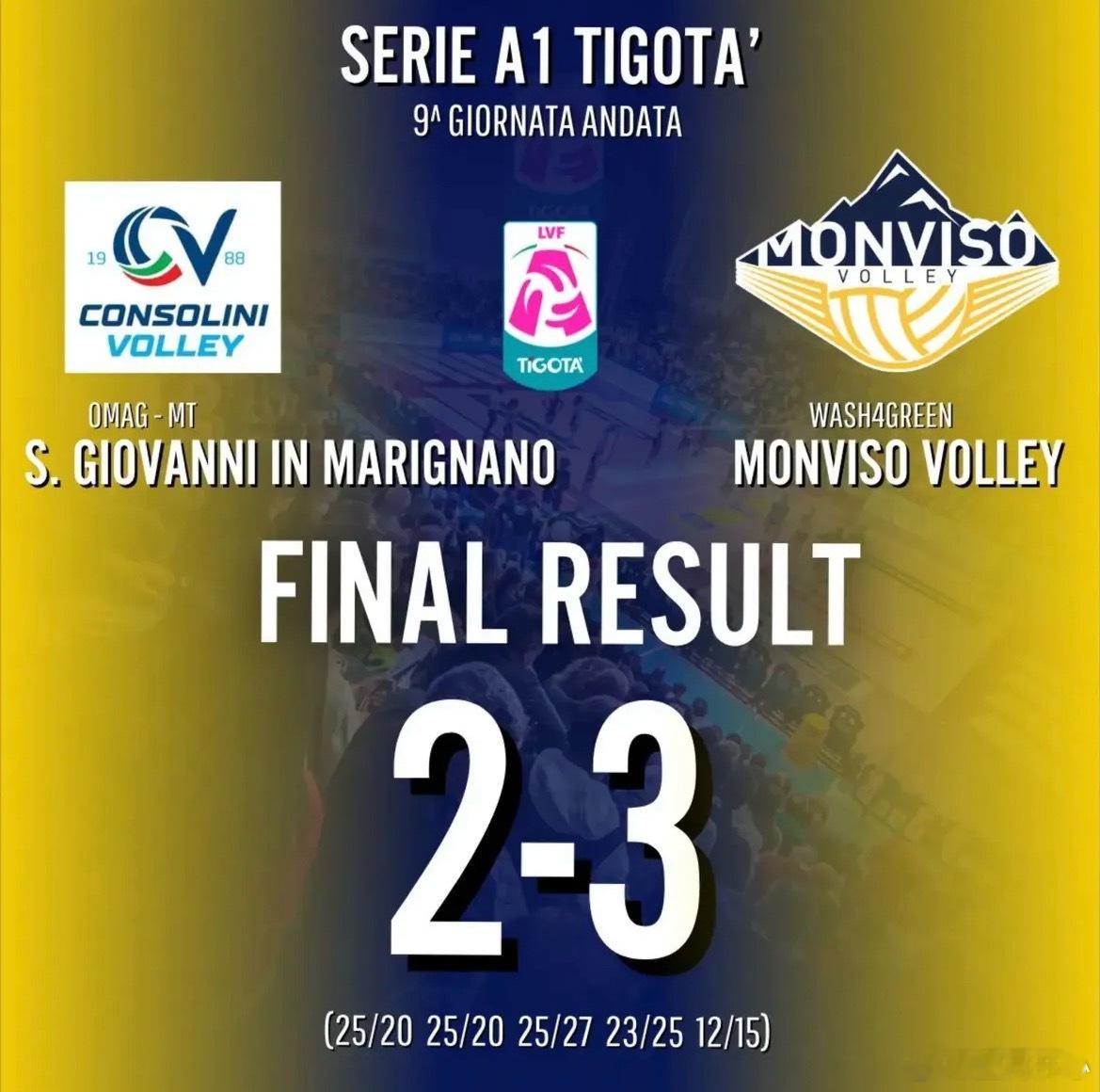 【意甲女排联赛第九轮简报】马切拉塔0-3科内利亚诺MVP卢比安11分诺瓦拉3-2瓦莱福利亚MVP石川真佑20分米兰3-1佛罗伦萨MVP拉尼尔17分斯坎迪奇3-0基耶里MVP斯金纳15分贝加莫2-3佩鲁贾MVP马尔科维奇15分布斯托3-0库内奥MVP帕拉14分圣乔瓦尼2-3蒙维索MVP多多里科23分