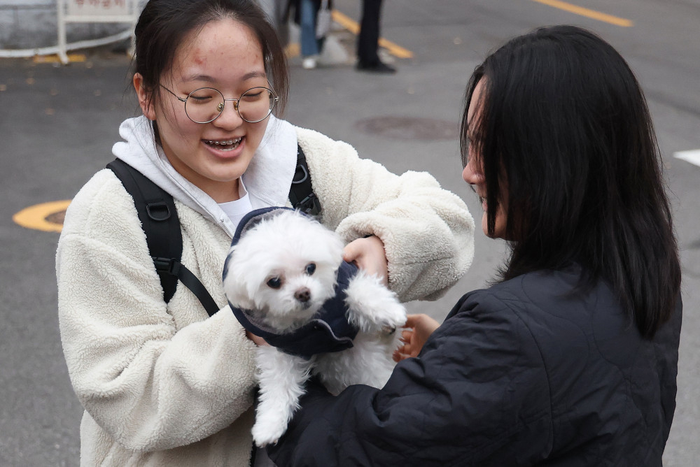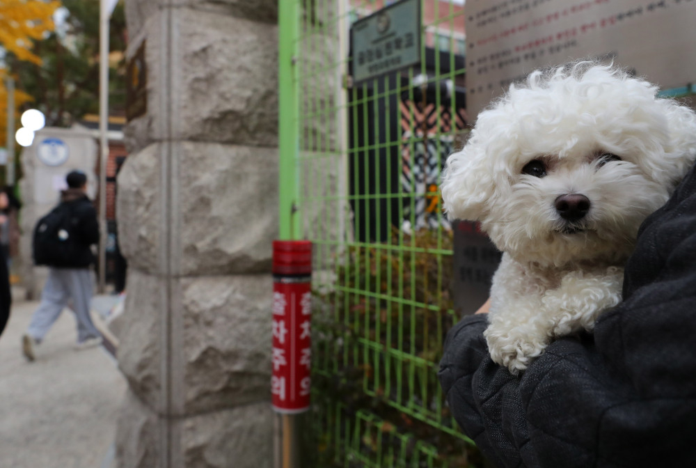 今天韩国高考~今年出门为高考的小主人送考的小狗们!
