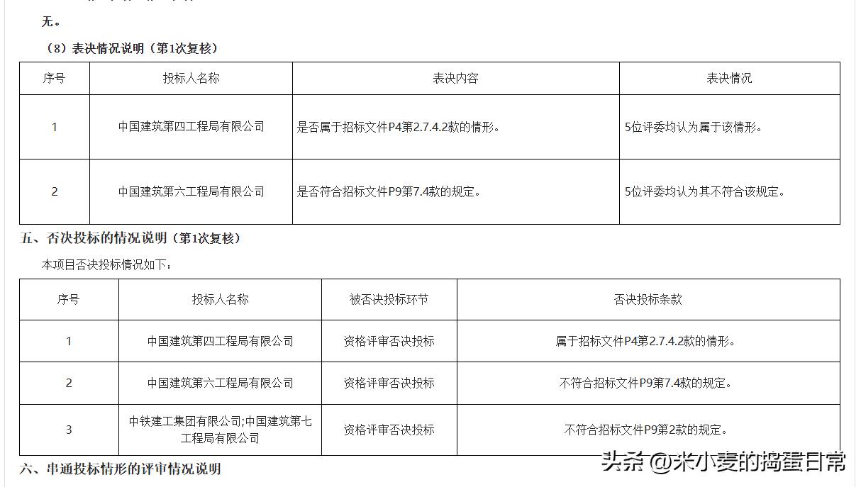 中字头巨头掐架!3家建筑央企直接被踢出局! 谁看了不说一句刺激!中字头建筑大佬们抢项目,结果评标现场直接杀疯了—— 中国建筑四局、六局、七局(还拉上中铁建工组队),全在资格审查环节被一票否决! 四局撞了招标文件P4那条“红线”,5个评委一致判它踩雷;六局、七局(+中铁建工)更直接,连P9的条款都没够上,直接被拦在门槛外。 这哪是投标啊,简直是中字头内部“淘汰赛”,资质不够连入场券都摸不着。 不过有人嘀咕:这么多巨头折戟,是招标条款太严,还是大佬们轻敌了? 你们觉得,中字头企业扎堆竞标,是“内卷”太狠,还是行业门槛该拔高了?