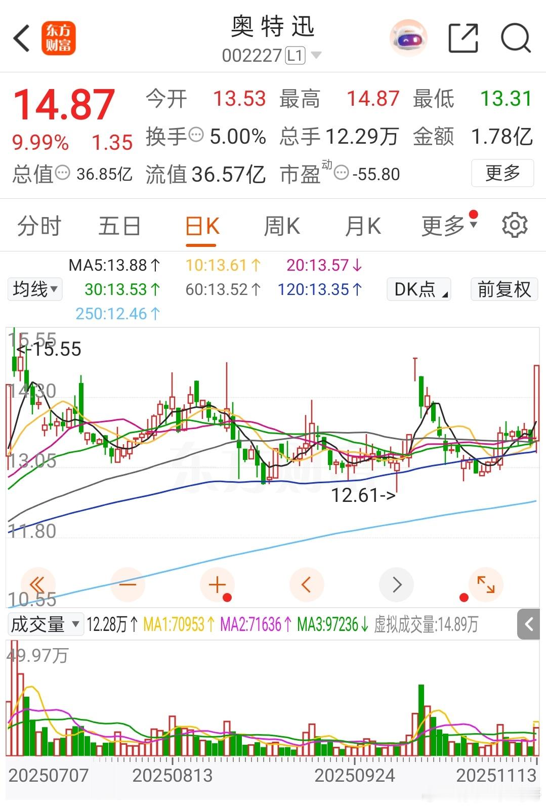 奥特迅太猛了,今天一飞冲天直接拿下涨停,相当给力阿,经得起考验,终究还是可以迎来收获阿