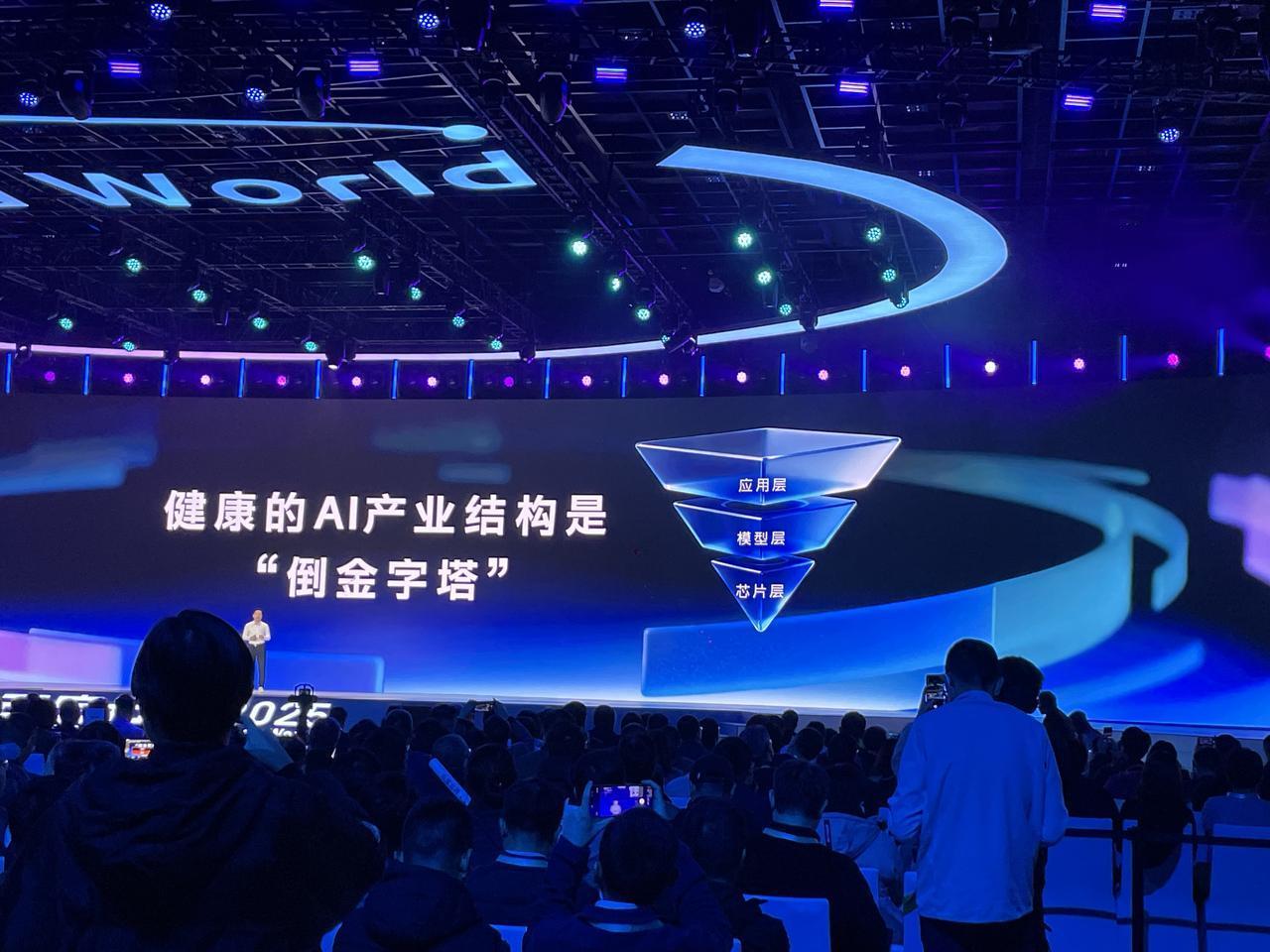 百度世界大会上,李彦宏一句话点破AI产业新趋势: 正从“头重脚轻”的正金字塔,转向“越往上越能打”的倒金字塔![思考] 过去的AI产业啥样? 底层芯片拿走近乎所有价值,模型、应用只能喝口汤,被吐槽“泡沫迟早破”; 现在要变天:芯片厂商赚多少不重要,芯片之上的模型得产出10倍价值,基于模型的应用更要创造100倍价值——简单说,“越靠近用户的应用,越能躺赢”?
