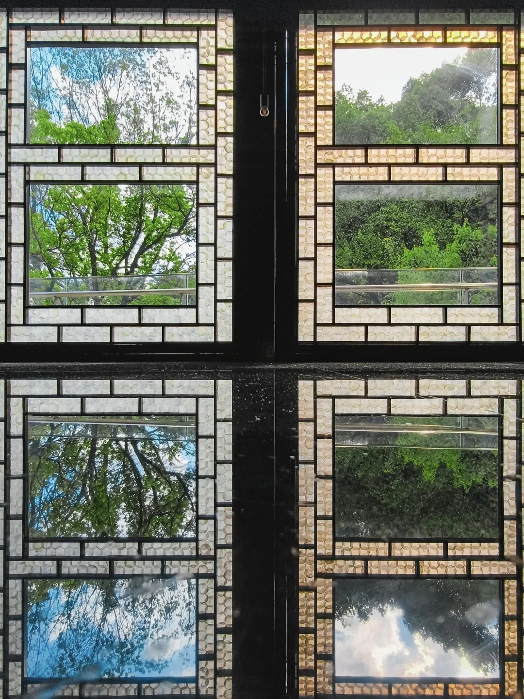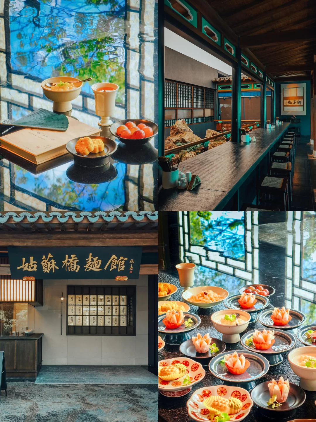 为了一扇窗🪟 我特意跑了一趟苏州🍃 在狮山脚下🏞️ 就撞进姑苏城的光影里✨ 木构梁架托着一方琉璃花窗🪟 天光💫漫进来时 像把碎玉撒在青砖地上✨ 缠枝莲纹在窗格上绕出软韧的弧🌈 云纹边角被晒得透亮☀️ 风🌬️过时 连投在墙上的影子都在轻轻晃🍃 . 忽然懂了为什么说📜 “苏州有自己的琉璃光院” 这里没有刻意的雕琢🍂 只有老中式🏯的温吞~ 花窗映着隔壁的竹树影🌲 雕纹里藏着日子的闲~ 连空气里都飘着窗棂漏下的光✨ . 哦对,这扇窗藏在姑苏桥面馆里 .