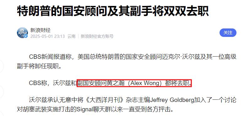 “那些馊主意都是他出的” 特朗普解雇了华裔顾问黄之瀚,将自己之前所做的那些荒唐事,都甩到了这位华裔身上。 黄之瀚顶着哈佛法学博士的光环,父母从广东移民美国后生下他,按理说该对故土有几分念想,可他偏要走一条反华的歪路,把“皈依者狂热”演绎得淋漓尽致。 为了挤入美国权力核心,这位宾夕法尼亚大学本科加哈佛博士的高材生,早在2012年就投身共和党政治,给罗姆尼当外交政策主任,后来又成了反华议员汤姆·科顿的首席顾问,一步步往权力金字塔爬。 2017年终于挤进特朗普政府后,他更是把“投名状”递得勤快,2018年《台湾旅行法》刚生效,就赶着当首位“访台”的美国高官,跟蔡英文会面,气得中方直接放话“任内别来大陆”。 在美中经济与安全审查委员会当主席时,他主导的年度报告成了共和党鹰派的立法蓝本,2024年国会“中国周”一口气推出近30项反华法案,从经济到港台事务无所不包,全有他的影子,按说这么卖力表忠心,总该混个安稳,可他终究没摸清特朗普的套路——这位老板从来只认利益,不认“功臣”。 2025年3月的“群聊泄密”事件成了导火索,国家安全顾问沃尔兹不小心把《大西洋月刊》总编拉进涉密群,聊的对也门军事打击计划全泄了底,这本是沃尔兹的低级失误,可右翼博主劳拉·卢默眼睛一转,竟把矛头指向了黄之瀚。 就因为黄是华裔,妻子在民主党执政时没辞公职,卢默便在网上喊他“为中国窃取机密的内鬼”,还煽动粉丝围攻汤姆·科顿的账号,离谱的是连亲共和党的福克斯新闻都骂这指控毫无事实根据,可特朗普偏听偏信,毕竟在他眼里,找替罪羊比解决问题容易多了。 于是从4月开始,白宫掀起了一场国安团队大清洗,20多个职员说开就开,连四星上将蒂莫西·霍都没能幸免,到了5月1日,沃尔兹被撤,身为副手的黄之瀚自然难逃一劫,多名知情人士直接透露他是被迫离职。 更讽刺的是,特朗普团队对外放话时,把之前那些没人买单的“荒唐事”全算在了黄之瀚头上,可稍微翻下履历就知道,所谓的“馊主意”哪件不是特朗普拍板的?黄之瀚当朝鲜问题副代表时,陪着特朗普搞历史性峰会,最后无核化没成,这锅现在成了他的;他推动的印太战略和对华制裁,当初可是特朗普拿来吹嘘的政绩,如今也成了他出的歪点子,好用的时候是得力助手,出事了就成罪魁祸首。 但其实黄之瀚的结局早有预兆,他早年跟着蓬佩奥干活,后来蓬佩奥失宠被撤了安保待遇,他这“旧部”本就处境微妙,更关键的是特朗普从来没真正信任过他,不然怎么会仅凭一个博主的无稽之谈,就把这位深耕共和党十年的资深顾问一脚踢开? 说到底,黄之瀚不过是特朗普权力游戏里的一枚棋子,有用时拿来装点多元团队的门面,没用时就当垃圾扔掉,还能顺便把自己的决策失误摘干净,这种操作特朗普熟门熟路,他第一任期就换了四任国家安全顾问,如今再弃一个华裔副手,不过是故技重施。 回头看黄之瀚这一路,为了往上爬,把“皈依者狂热”刻进骨子里,反华反得比谁都积极,以为靠踩着故土能换得荣华富贵,可在美国政坛的种族偏见和权力倾轧里,他的华裔身份从来不是加分项,反而成了被攻击的靶子,最后落得个背锅侠的下场。 这场闹剧里没有赢家,黄之瀚机关算尽,终究成了政治牺牲品;特朗普甩得一手好锅,却掩不住政策失败的事实。