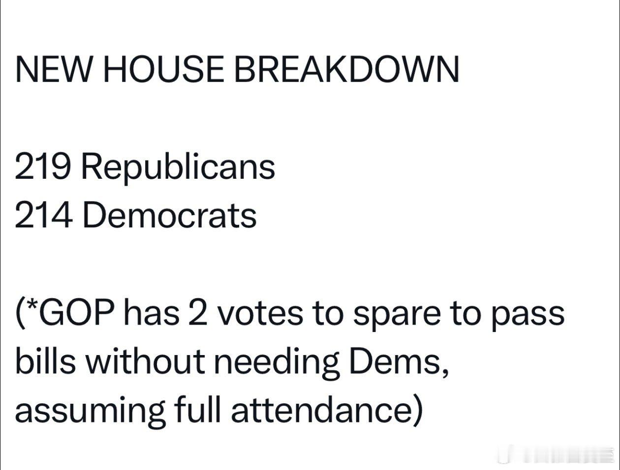 Arizona议员今天宣誓就职后,众院共433成员共和党占多数:219🆚214最多可以丢两票,否则需要民主党🗳️