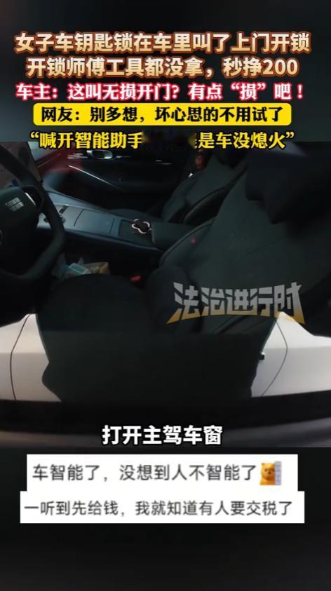 山西长治,女子停车后不小心把车钥匙锁在了车里,开锁师傅看了一眼,表示要先付款200,绝对无损开车,女子二话不说就扫码转钱,可下一秒,师傅就通过语音喊话,让车机自己把车窗打开,女子当场懵了:这叫无损开门?我看是有点“损”吧! 据法治进行时11月12日报道,这位女子在长治停好车后,一不小心,把车钥匙锁在了车里面,这下可急坏了,人生地不熟的,车门打不开,回也回不去。 没办法,只能在网上找了个开锁师傅的电话。师傅很快就来了,围着车子转了一圈,透过车窗看了看,拍着胸脯跟女子保证,说这活儿他能干,而且保证是“无损开锁”,绝对不伤车漆不撬门。 他还特别强调,自己这技术,在整个长治市都找不到第二个这么“无损”的,女子一听,心里踏实多了。 毕竟车是自己的宝贝,最怕的就是开锁时把车给弄坏了,师傅接着说,得按规矩来,要先登记身份证和驾驶证,证明这车确实是她的。 这很正常,女子表示理解,可接下来师傅又说,得先付钱,一共200块,虽然觉得先付钱有点奇怪,但看着师傅那一脸自信的样子,再加上急着开车门,女子也没多想,爽快地拿出手机扫码,把200块钱转了过去。 她心里还想着,接下来师傅肯定要拿出一套专业工具,比如铁丝、气囊什么的,小心翼翼地在车门缝里捣鼓半天,才能把锁打开。 可谁能想到,接下来发生的一幕让她当场就愣住了,只见师傅收了钱,什么工具都没拿,只是走到驾驶座的车窗边,弯下腰,对着车里面大声喊了一句:“银河!银河!打开主驾驶车窗!” 话音刚落,神奇的事情发生了,车窗竟然真的自己缓缓降了下来!师傅很自然地伸手进去,从里面打开了车门,然后把车钥匙递给了还处在震惊中的女子,整个过程不超过一分钟。 女子拿着钥匙,站在原地,脑子一片空白,她看看降下来的车窗,又看看一脸平静的师傅,一时间不知道该说什么好,花200块钱开锁,直接开出了250的效果! 这件事被发到网上后,网友们一下子就炸开了锅,有的人觉得师傅这钱赚得太轻松了,简直就是“智商税”。 一位网友说:“我一开始还挺同情师傅的,怕他开完锁,车主赖账不给钱,可看到他这个开锁方式,我都有点想替车主骂他两句了。” 这种想法代表了很大一部分人的心声,大家觉得,体力劳动才叫劳动,这种动动嘴皮子的事,不值这个价。 但是,也有不少人站在师傅这边,他们认为,师傅收这200块钱,合情合理,一位网友就分析说:“你们只看到了他喊了一句话,没看到他知道该喊什么,换了车主自己,她知道能用语音开车窗吗?师傅提供的是信息和经验,这本身就是价值。” 这话说得有道理,我们平时习惯了为看得见的辛苦买单,比如搬运工的汗水,修理工的忙碌,但对于这种看不见的知识和经验,我们往往会觉得“不值”。 可实际上,解决问题的关键,恰恰就是这个知识,师傅知道这款车叫“银河”系统,知道可以用语音控制,这就是他的专业性。 他能快速、无损地解决问题,这本身就是服务的核心价值,换个角度想,如果师傅不懂这个,非要用传统方法,又是铁丝又是气囊地折腾半天,万一不小心划伤了车漆,或者损坏了车门密封条,那后续的维修费用可能就不止200块了。 从这个层面看,师傅用最简单、最安全的方式解决了问题,这200块钱其实是为“避免了更大的损失”而付的费,他收的不仅是出工费、路费,更是他多年经验积累下来的“信息费”。 说到底,这件事也给我们提了个醒,现在科技发展太快了,很多新出的汽车都带有一大堆智能功能。我们买了车,不能光会开,还得花点时间看看说明书,了解一下自己的车到底有哪些“隐藏技能”。 就像这位女子,如果她早知道自己的车能语音控制,可能一个电话都不用打,自己就把问题解决了,科技带来的便利,有时候真的超乎我们的想象,但前提是你得知道怎么用它。 总的来说,这件事没有绝对的对错,女子觉得亏,是因为心理预期和现实差距太大,师傅收钱,是因为他提供了解决问题的知识和经验。 这件事就像一面镜子,照出了我们很多人在面对新事物时的思维惯性。我们更愿意为“苦劳”付费,而常常忽略了“功劳”的价值,尤其是知识和信息的价值。 大家觉得呢?如果是你遇到了这种事,你会觉得这200块钱花得值吗?欢迎在评论区聊聊你的看法。 信源:法治进行时2025-11-12——女子车钥匙锁在车里叫了上门开锁,开锁师傅工具都没拿,秒挣200,车主:这叫无损开门?有点“损”吧!,网友:别多想,坏心思的不用试了,“喊开智能助手的前提是车没熄火”