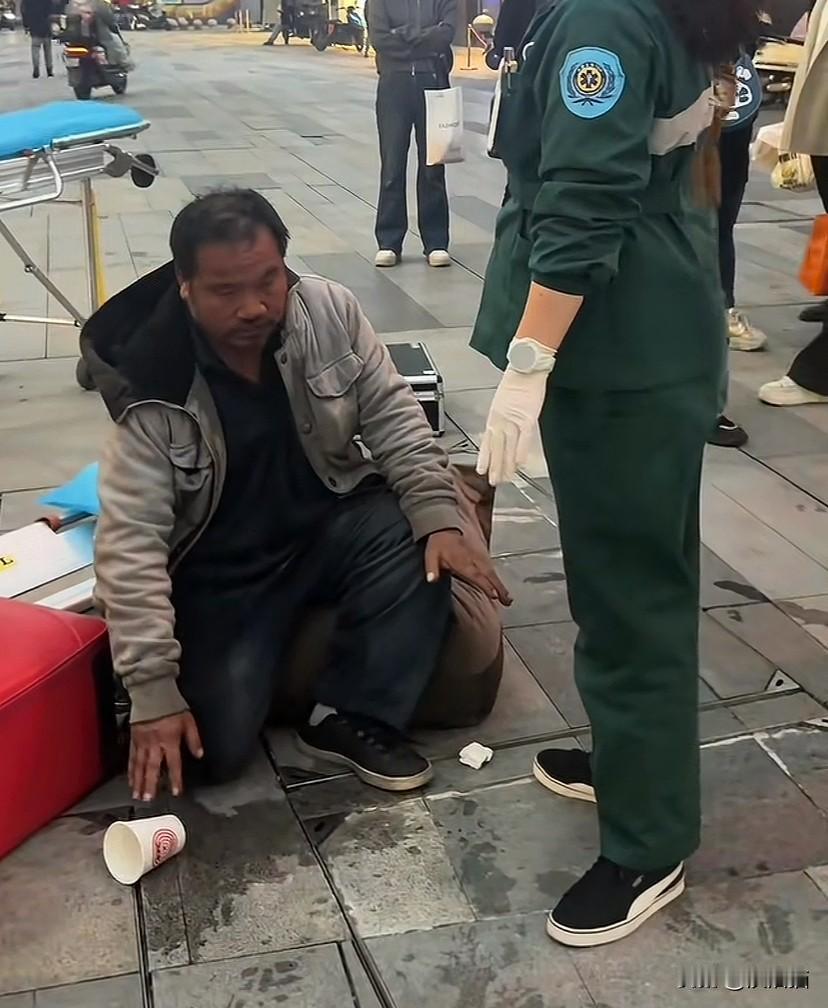 湖北宜昌,男子买菜回家的路上看到一位大叔摔倒在地上。男子想上前扶他起来,又担心引起不必要的误会,于是他拿出自己的手机让路人帮忙拍视频,这样有误会时也有视频为证。 这位摔倒的大叔衣着朴素无华,他穿着一件灰色的外套,外套看着有好几天没洗了,看着有些脏。下身是黑色的裤子,也有点脏。脚上穿着黑色的鞋子,鞋面都是灰尘。 大叔身旁有一个红色的行李箱,旁边还有一个牛津布包,里面鼓鼓的,估计都是大叔的行李。 路过的其他行人看到摔倒的大叔,又看到男子上前帮助,行人也纷纷驻足不前,有的甚至上前一起帮忙大叔。 有一位身穿卡其色大衣的女子到附近的商店里端来温水给大叔喝。看到大叔躺在地上动不了,女子脸上满是焦急和担忧,她站在旁边一直观察着大叔。 还有一位女生在了解到大叔有基础病、高血压、冠心病之后到附近的药店里为大叔买来药物。 男子则一直守在大叔身边,他双手抱着大叔的腋下,想把他从冰冷的地上扶起来。也有好心人帮忙大叔打了报警电话和120急救电话。 在众人的关心下,大叔喝到了暖水,也吃上了药,身体渐渐的缓了过来。大叔在男子和其他好心的搀扶下慢慢站了起来,他双手合十向着众多好心人致谢。 看到大叔缓了过来,众人的心里终于松了一口气。特别是那位身穿卡其色给大叔端来温水的女子,她原来一脸焦急担忧,在看到大叔缓过来后,她发自内心的笑了。 在大叔口里得知,他是从雅安过来宜昌找工作。过来后好几天没有找到工作,心里着急,加上本身有基础病、高血压、冠心病,他拿着行李走在路上时突然就摔倒了。 男子问大叔要家里人的电话,好让家属过来照顾大叔。大叔摇了摇头,他说:我有两个孩子,一个儿子一个女儿。儿子在雅安地震时不在了,女儿还在上学。爱人在雅安山里,暂时也过不来。 听了大叔的话,众人又是一阵心疼。有一位身穿咖啡色外套的姑娘给大叔的口袋里塞钱,让他照顾好自己。接着转身离开,不一会,姑娘又提着一袋吃的回来,原来她去给大叔买吃的了。 姑娘把吃的交给大叔,大叔来不及说感谢的话,她摆摆手转身就走。搀扶大叔起来的男子在看到大叔缓过来后,他拿起刚才买的菜默默离开。 120急救人员赶到后,大叔或许是没钱,或许是为了节约钱,无论众人怎么劝说,他都不愿意去医院。 随后,警察赶到现场,他们苦口婆心地劝说大叔前往医院做个检查。然而,大叔却执意不肯,他言辞恳切地表示,实在不愿麻烦他人。 众人见大叔态度如此坚决,便不再强行劝说。只是纷纷叮嘱大叔要格外留意自己的身体状况,倘若感觉身体有任何不适,一定要及时说出来。他们还暖心地安慰大叔,在宜昌,无论何时遇到困难,都会有人伸出援手。 目睹众人对自己无微不至的关怀,大叔的内心被深深触动,泛起层层感动的涟漪。他再三诚恳地表示自己并无大碍,还承诺日后定会多加留意自身的健康状况。 在宜昌这座充满温情的城市里,大叔真切地感受到了那份如春日暖阳般的温暖,这份温暖,让他的心灵得到了慰藉。