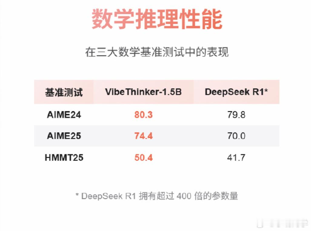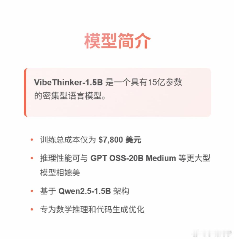 【 VibeThinker-1.5B】这个大模型最大亮点是,在三大数学基准测试中的表现都超过了DeepSeek-R1(1月份版本)。目前模型已开源,可在Hugging Face平台下载本地运行。微博也要搞AI大模型了, 快出来聊聊你的前世今生
