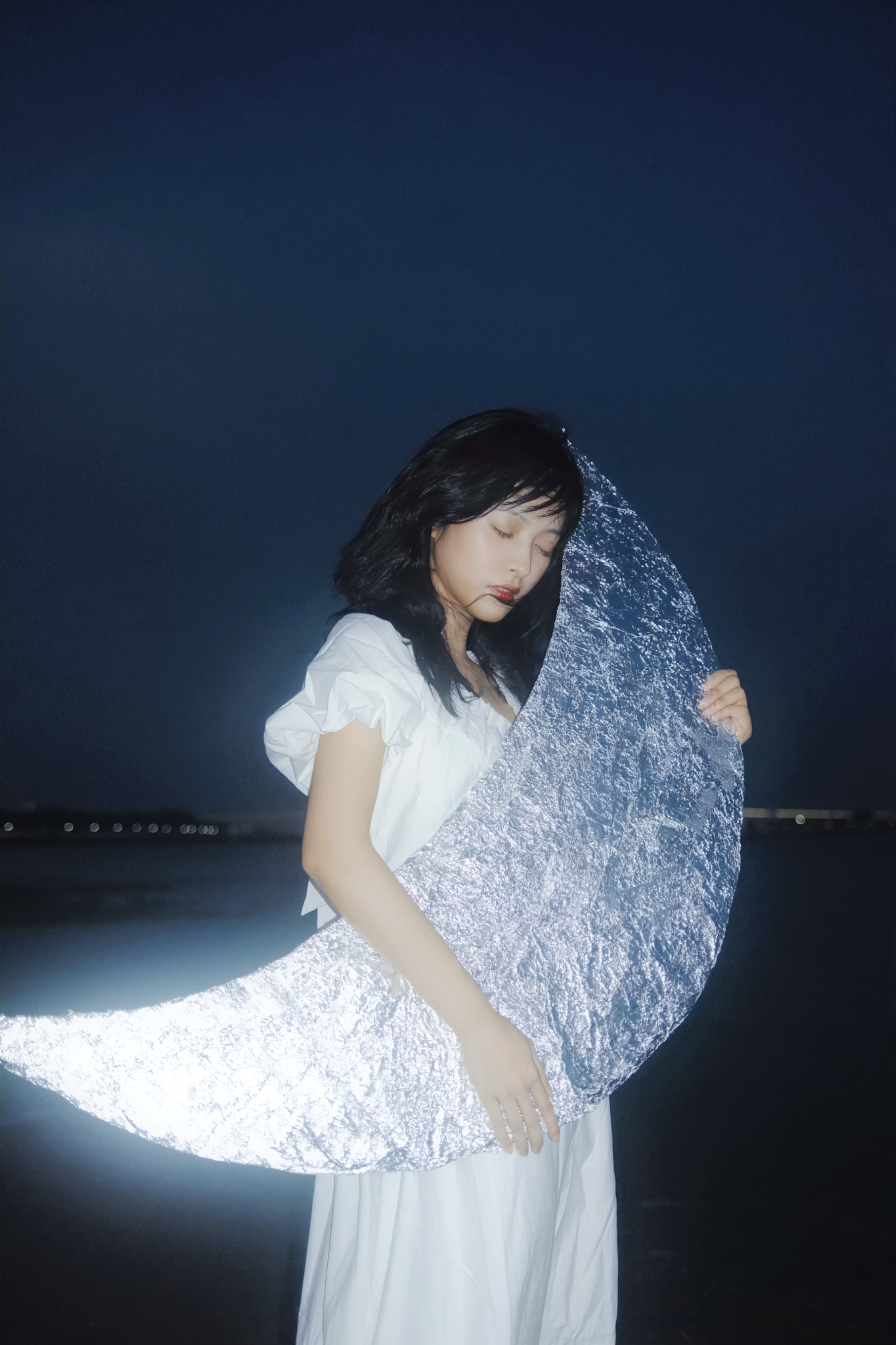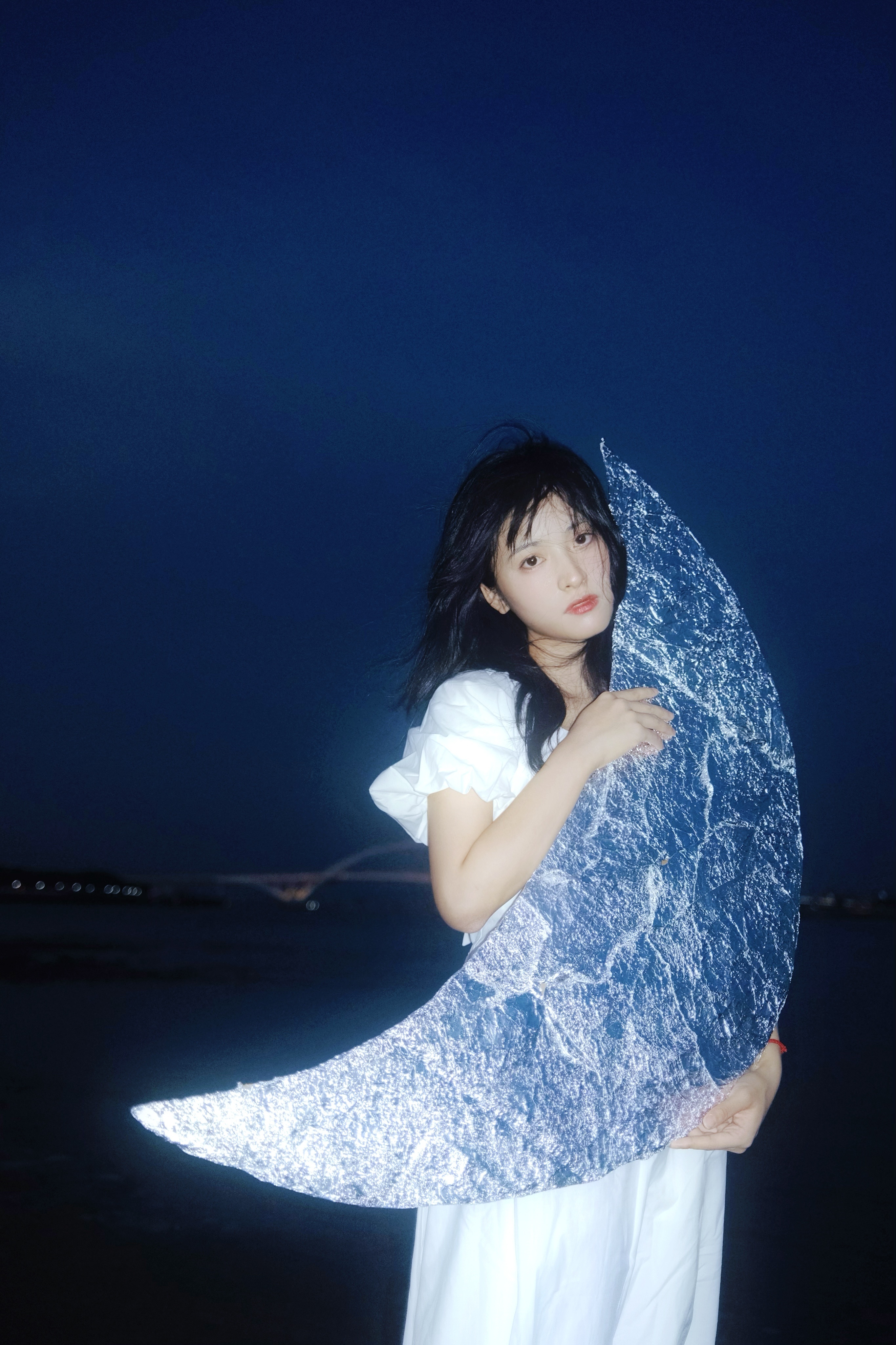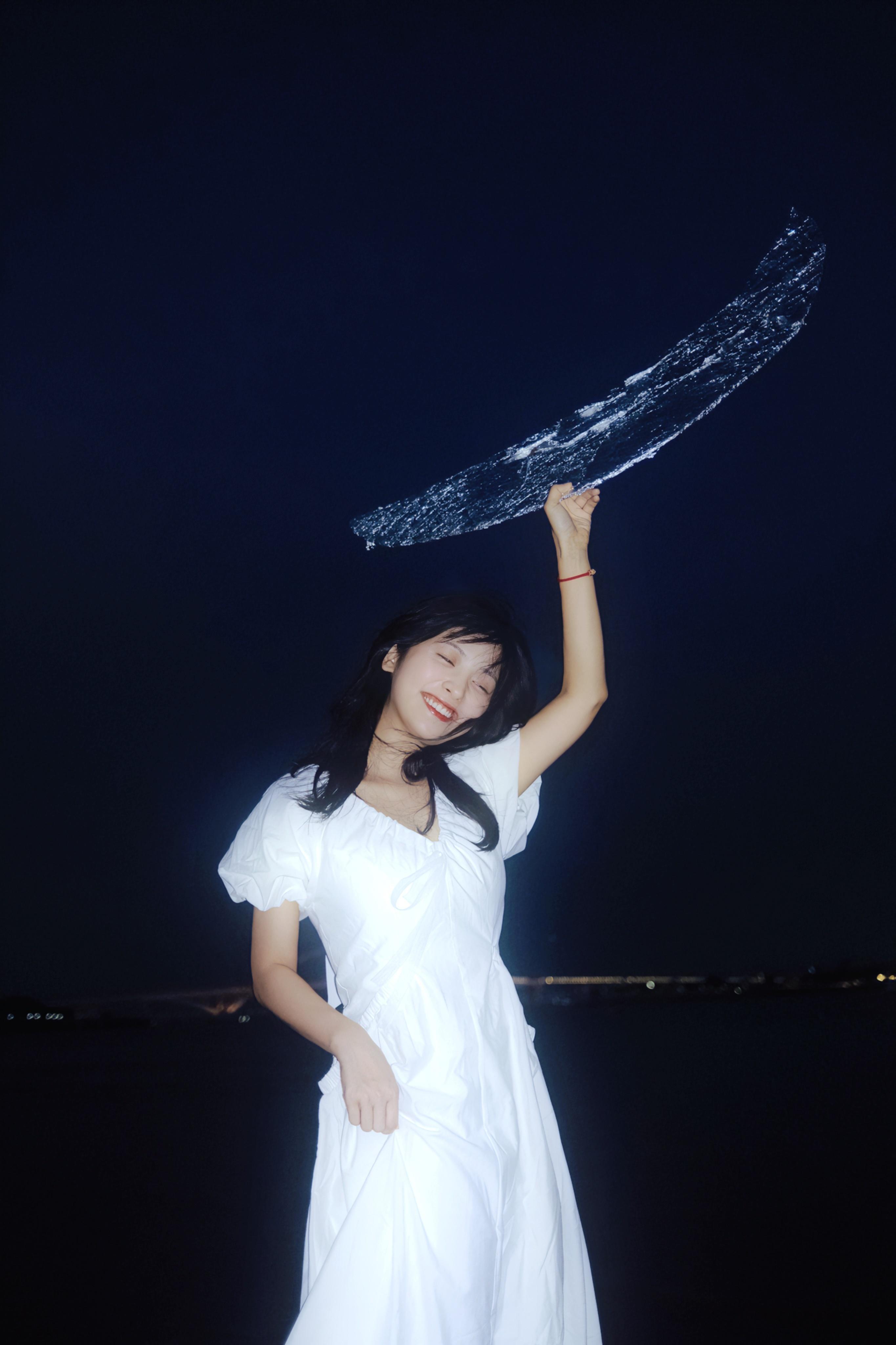 沈月,白衣飘飘美柔纱,揽一弯月好过秋