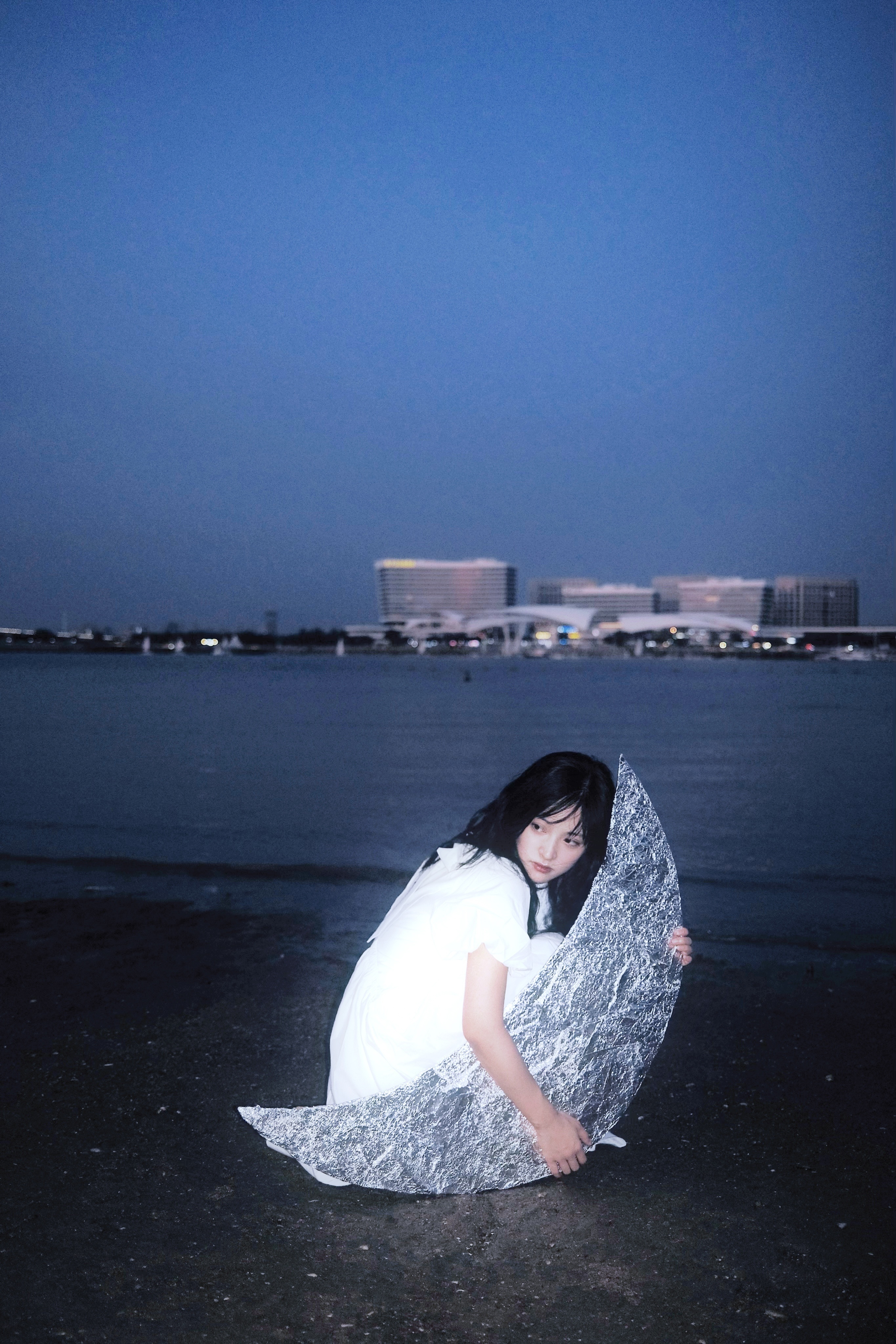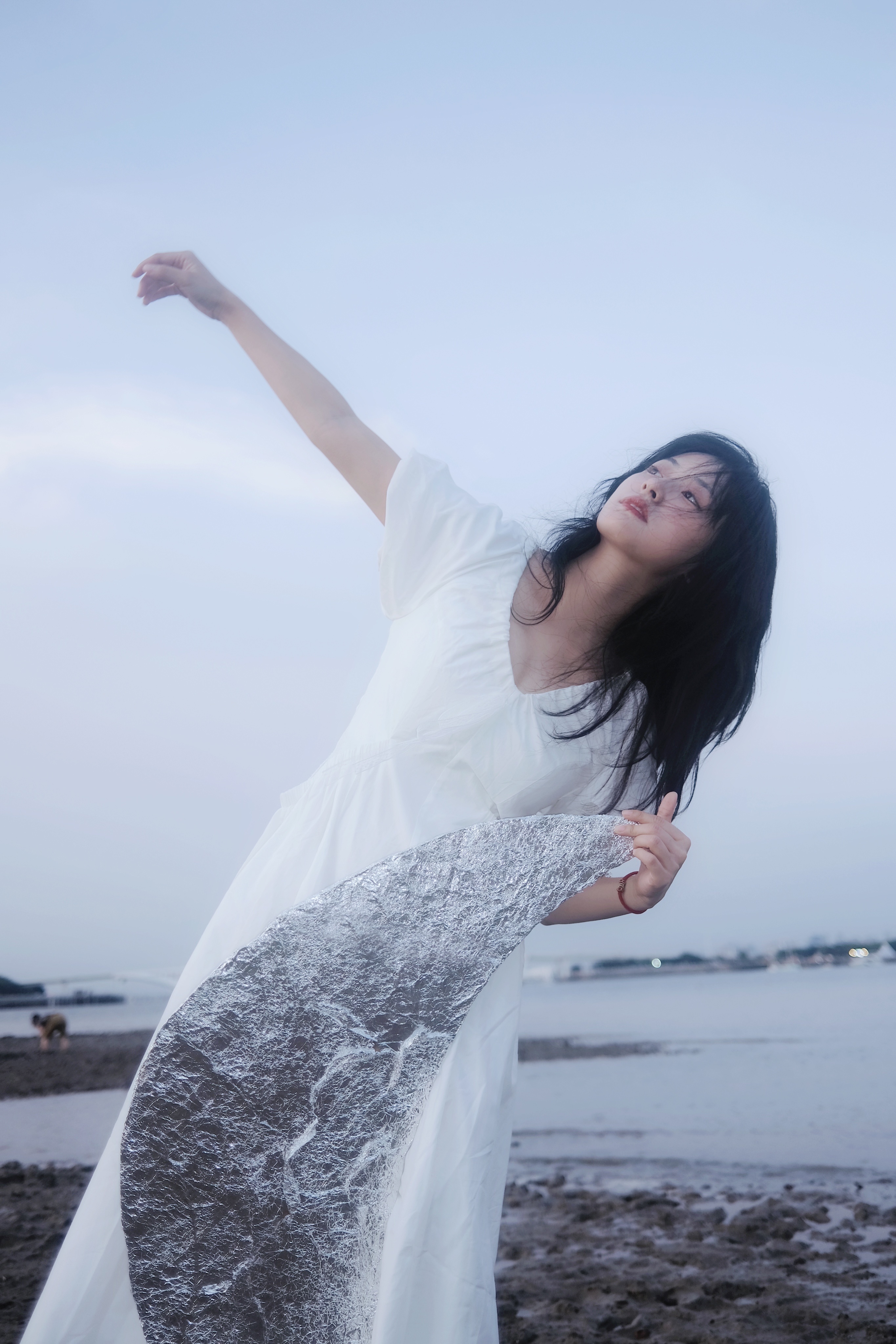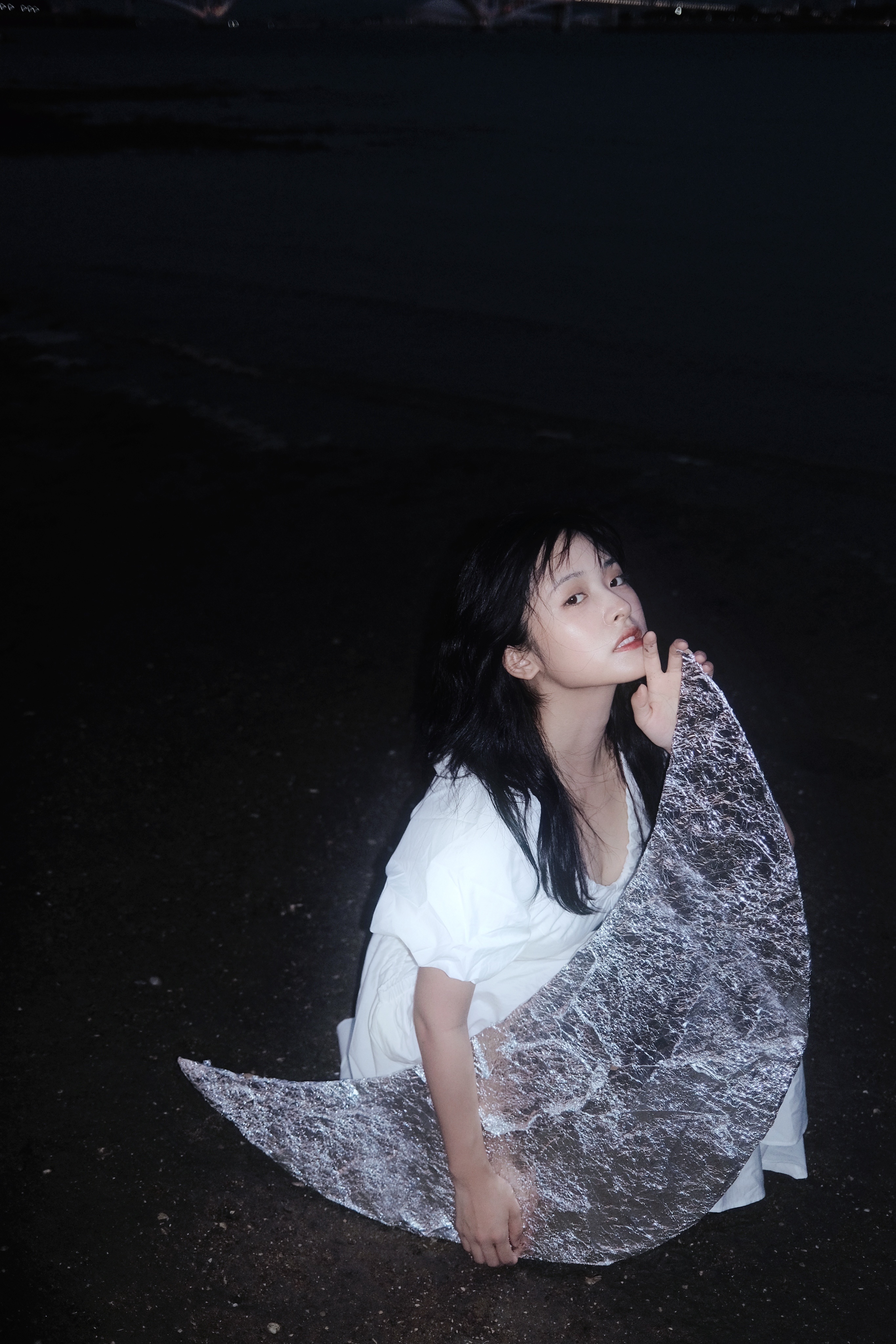 沈月,白衣飘飘美柔纱,揽一弯月好过秋