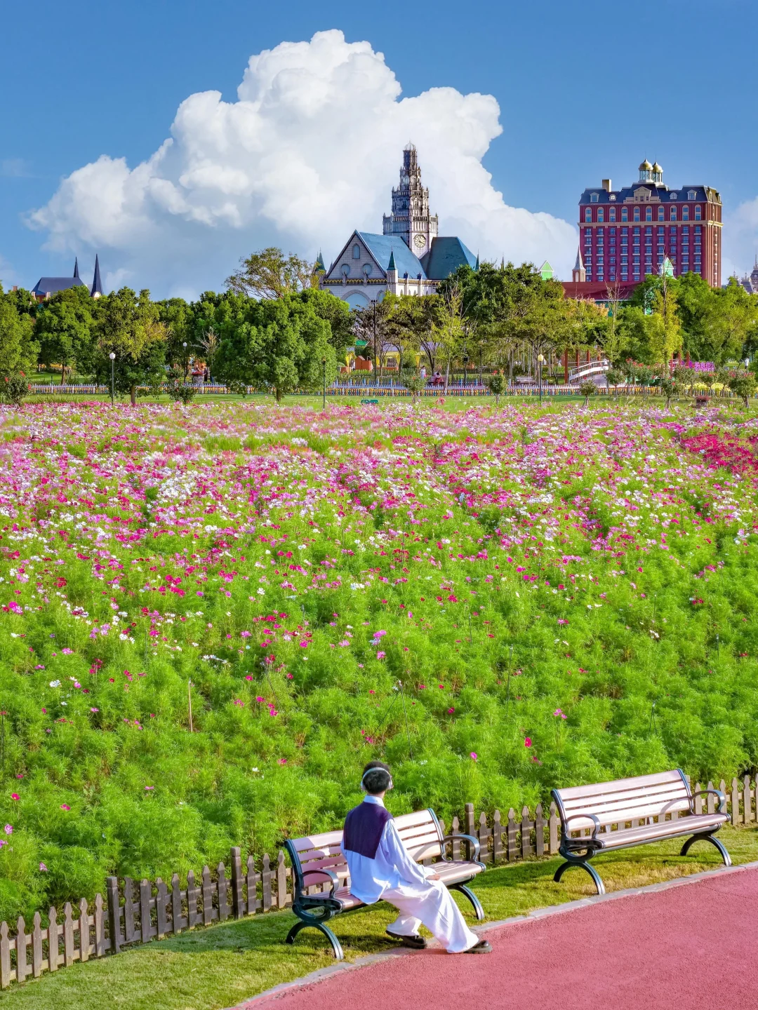 国庆假期去了趟盐城🏯 被数万株百合花编织的秋日童话震撼了🌸 粉黛、浅紫、纯白交织成七彩地毯🌈 搭配旋转风车和欧式建筑🏰 不用滤镜都能拍出油画质感🖼️ 这里的秋天🍁 仿佛是打翻了的调色盘🎨 这份攻略帮你避开人潮👫 拍出朋友圈出圈的秋日大片📸 . 📍盐城荷兰花海 .