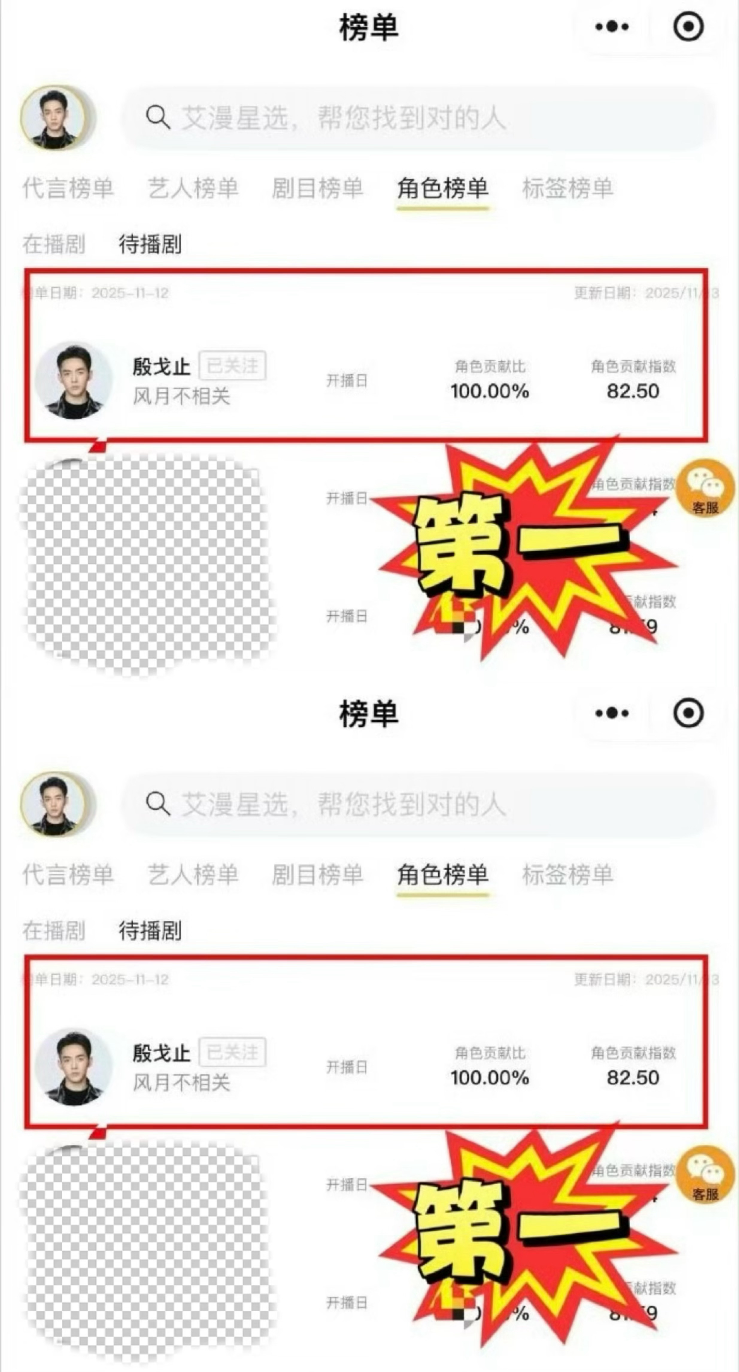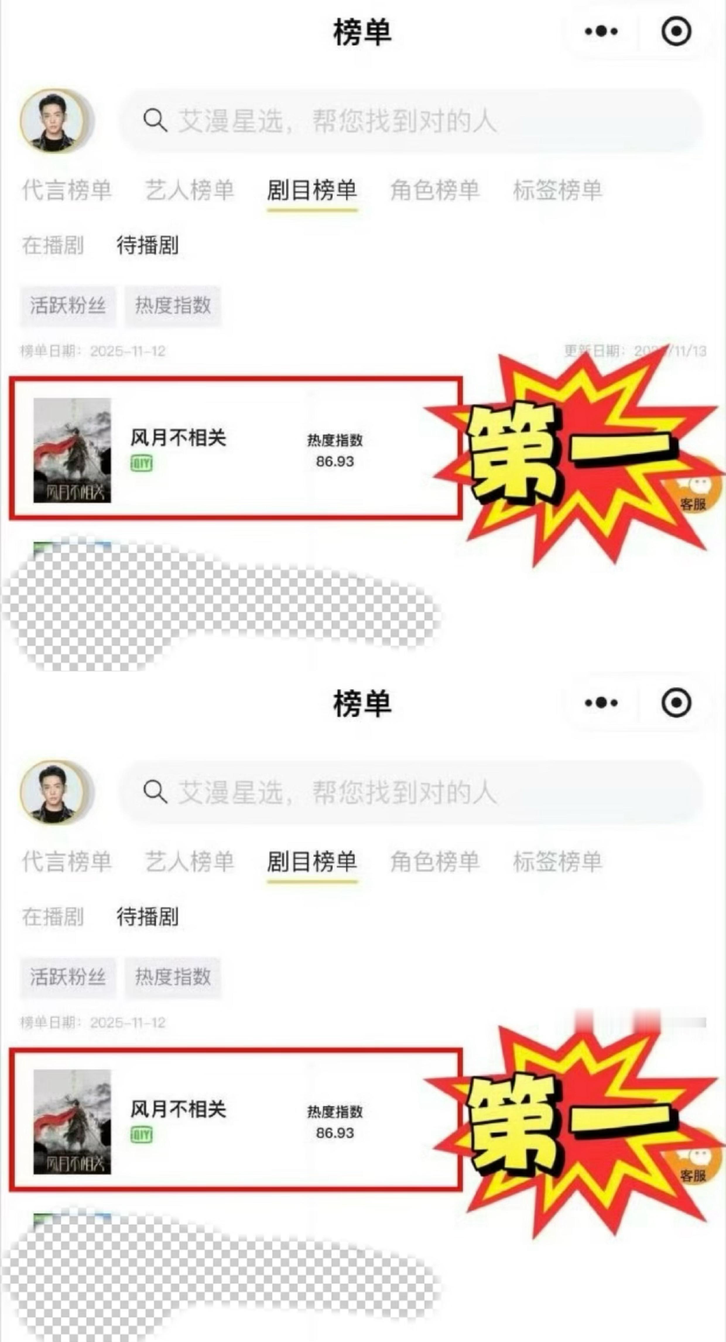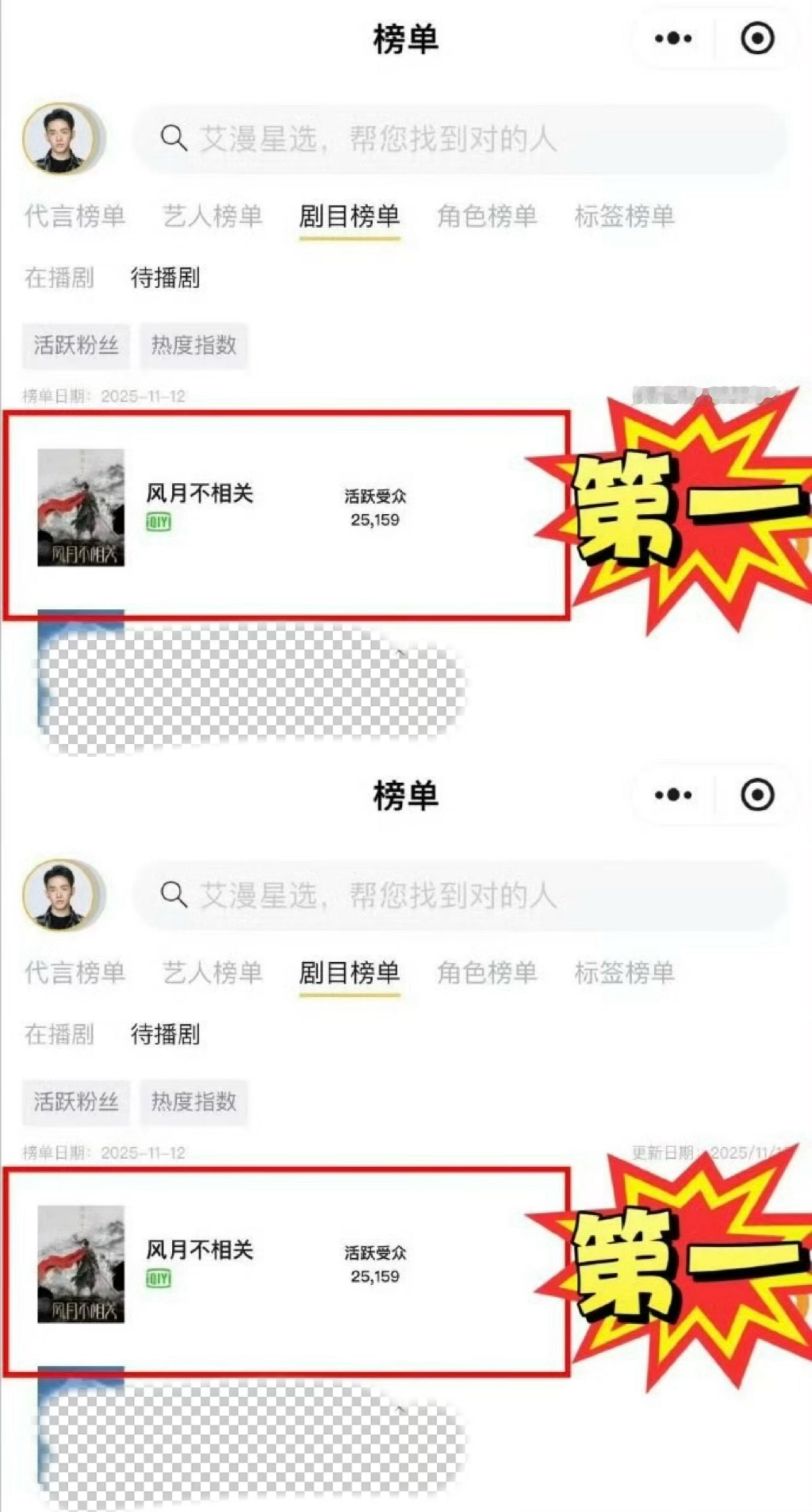 恭喜邓为待播剧风月不相关和角色殷戈止拿下艾漫数据角色贡献度、热度指数、活跃受众三榜第一,大写的厉害👍🏻👍🏻