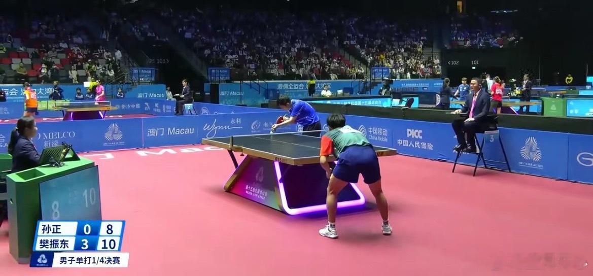 全运会乒乓球男单1/4决赛结束一场,樊振东4-0横扫孙正,11-8、11-3、11-6、11-8;率先晋级半决赛! 将静候王楚钦和林高远之间胜者!