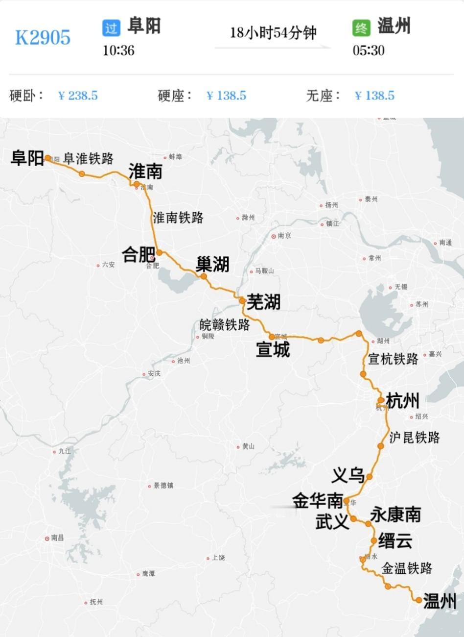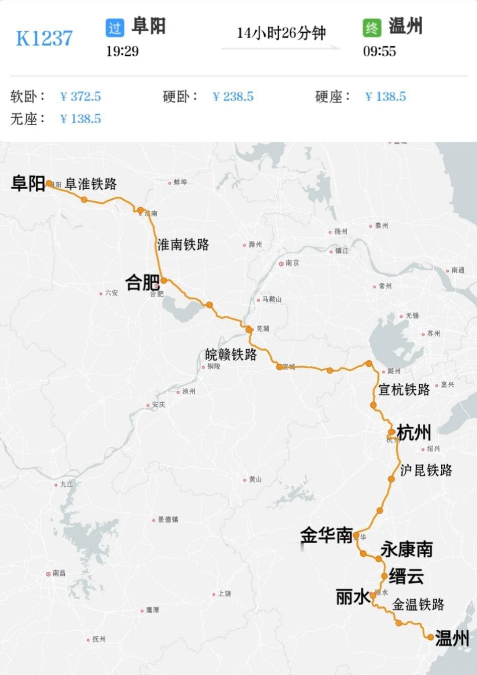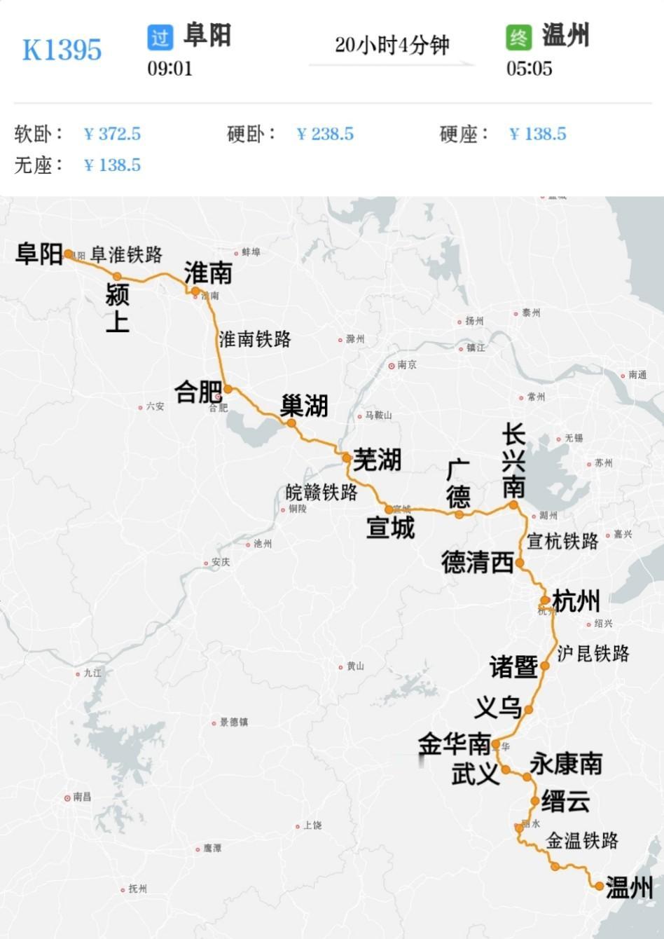 阜阳到温州4趟绿皮火车 阜阳到温州K1049次 阜阳到温州K1395次 阜阳到温州K2905次 阜阳到温州K1237次